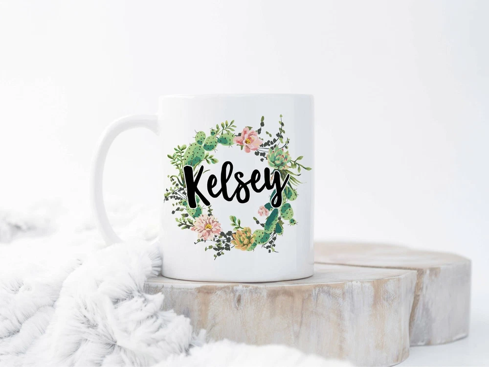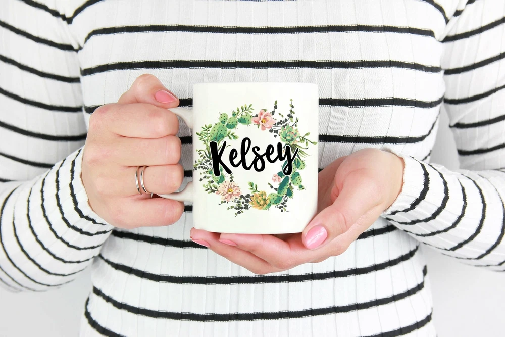 Floral Name Mug Custom Name Mug Personalized Mug Custom Coffee Mug Monogram Mugs