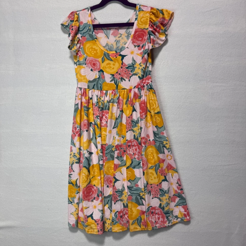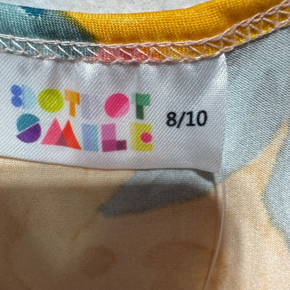 New with tags dress size 8/10 DotDotSmile Multi color flowers empire dress with flutter sleeves back neckline is lower then the front neckline cool slinky materials 95% polyester 5% spandex 416 Size: Girls 8 Condition: New With Tags