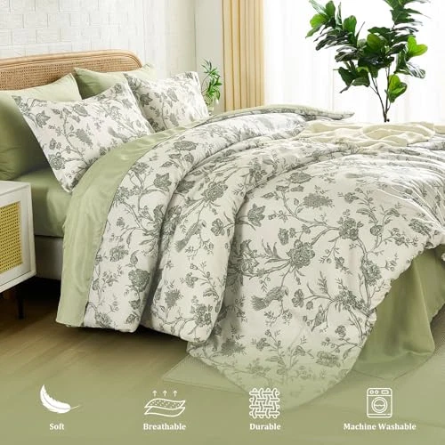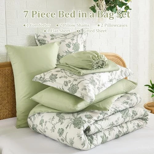 Return Policy Fast Delivery Trusted seller Floral Queen Comforter Set 7 Pieces Bed in a Bag, Sage Green Flower with Bird Bedding Set, Soft Reversible Comforter with Sheet Set 90"x90" Product Description Floral Design: Elegant sage green flower print on front, reverse is pure sage green, adding farmhouse cheer to any home decor, good choice as a birthday gift or special holiday gift What You Get: This 7-piece Queen size Bed-in-a-Bag includes 1 comforter (90" x 90"), 1 flat sheet(90"x102"), 1 fitted sheet(60"x80"+14"), 2 pillow shams(20"x26"), 2 pillowcases(20"x30") Premium Material: Features premium down alternative filling, warm and lightweight, ensuring a smooth and breathable touch for an excellent sleep experience Durable and Safe: comforter set certified by OEKO-TEX Standard 100, great durability and safety Easy to Maintain: Simply machine wash in cold water on a gentle cycle, do not bleach. Comforter set is packaged in a vacuum bag, you can bake it in the sun for a few hours and tap it gently to make it fluffy again Shipping Returns Payment Shipping Shipping is FREE to all addresses other than APO/PO boxes in the lower 48 states. All our stock ships from US-based warehouses. Shipped via USPS or UPS (depending on location and package weight) Unless stated otherwise, all orders will ship within 24-72 hours of your payment being processed. Check our feedback to see the great reviews of FAST shipping we offer. Returns Seller does not accept returns Payment We currently accept payment via eBay managed payments only. Once payment is cleared, we will dispatch your shipment within 1-3 business days. Please refer to the "Shipping" tab for more information regarding shipping speed to your destination.