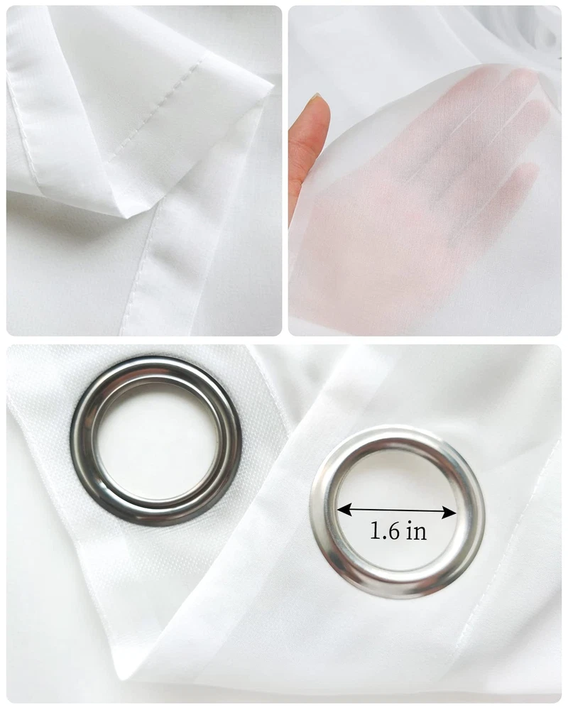 Our voile texture semi sheer curtains are the perfect home decoration,improve the quality of life while also protecting privacy and filtering the light.Window curtains are an essential partner in your daily life. Quality window treatments with soft breathable semi sheer voile fabric and fine stitching craftsmanship,let you fondle admiringly. Unique semi sheer curtains are designed to give your room charm and luminosity,with modern exquisite draperies pattern creative idea,draperies can match almost all types of home styles and deeply impressed your friends or family. Semi sheer drapes can perfectly create a comfortable and airy indoor environment,easily break the dullness of the room. Window curtain panels can play a important role in filtering out the dazzling sunlight,softening the daylight and easily brighting up the room. Window treatments panels can still play a good role in protecting privacy,people can not see anything of the indoor from outside of the windows. Various Size Information of Sheer Curtains: ➢27.5x39in*2 ➢42x45in*2 ➢42x54in*2 ➢42x63in*2 ➢42x84in*2 ➢52x45in*2 ➢52x54in*2 ➢52x63in*2 ➢52x72in*2 ➢52x84in*2 ➢52x90in*2 ➢52x96in*2 Suitable for various places,such as kitchen,bedroom,kids room,living room,bathroom,dining room,guest room,sliding door,patio door,nursery,office,cafe etc. Easy to hang grommet drapes and slide smoothly. Easy to clean,not easy to deform,do not shrink/fade/wear,machine washable in cold water,gentle cycle,light iron if needed,do not bleach. Our draperies can make you cheerful enjoy your own space and do whatever you want without worry. If you have any questions,please contact me.I'm waiting for you! Light Filtering Curtains:Floral window semi sheer curtains greatly block the dazzling UV rays and glare,filter a part of light.After passing through the voile curtains,the sunlight will be softer and more comfortable.Increase the lighting of indoor rooms,creat a bright stylish space while relax and enjoy the warm sunlight in all season. Floral Semi Sheer Curtains:Window treatments curtains provide you with enough security and privacy.People outside can not easily see the inside of the room.Voile drapes are pefect for kitchen,bedroom,kids room,living room,bathroom,dining room,guest room,sliding door,patio door,office,cafe,party window decoration. Grommet Curtains:Each window curtain panel with durable grommets to slide and hang easily.Voile curtains with lightweight and breathable texture,bring the cool air and wind,add a hazy cozy sense to your room.Sheer drapes are eco-friendly and healthy for your and your family's daily life.Suitable for kids,teens,adults,boys,girls,men,women. Sheer Curtains for Spring Summer Window Decoration:Soft,breathable,airy and drape well window treatments curtains surface with quality semi sheer voile fabric amd fine exquisite workmanship.Semi sheer drapes can harmoniously blends with various home styles,add a aesthetic and dreamy refined sense to your room and make your room looks more spacious than it actually is. Package includes:2 Panels semi sheer curtains,each window curtains panel measure 52 inch wide by 90 inch long.Choose curtain panels width is 1.5-2 times wider than your window to achieve a better decorative effect.Easy care and do not shrink,machine washable in cold water,gentle cycle,light iron if needed,do not bleach.