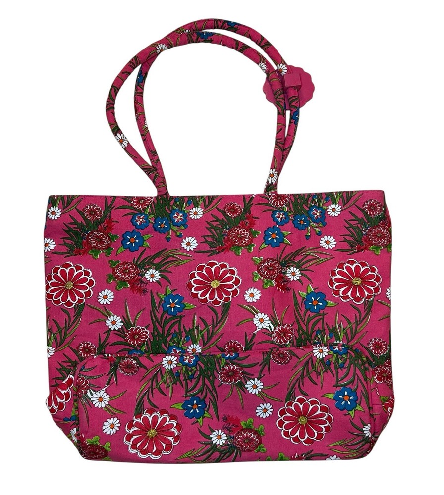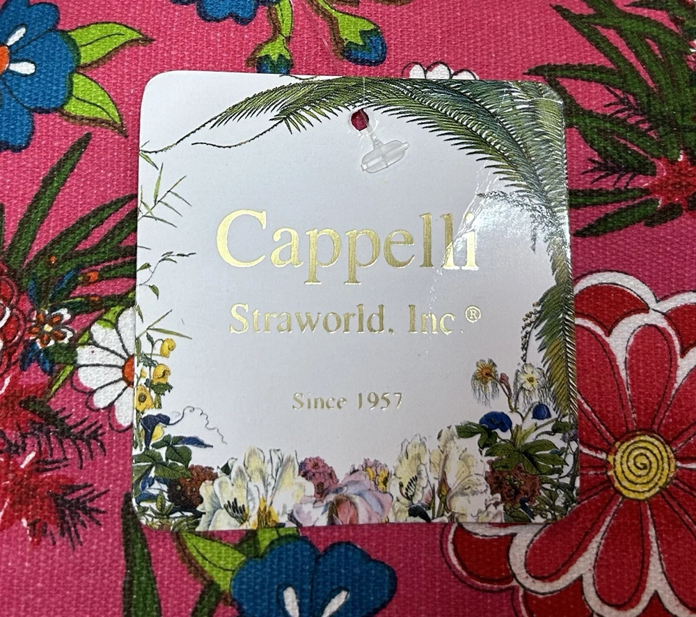 Cappelli Straworld Canvas Tote Bag Floral Handbag Beach Tote Bag Hot Pink NWT