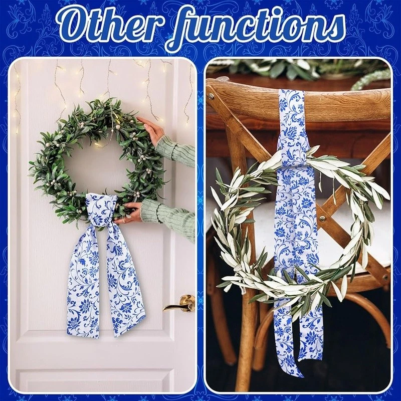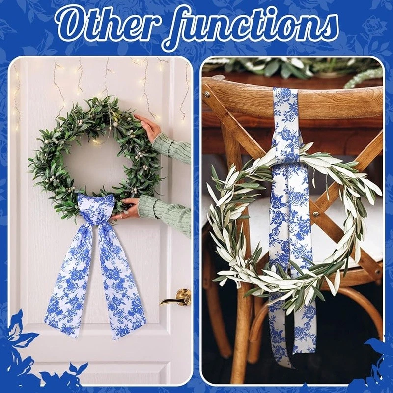 About this item Flexible Seasonal Decor: this beautiful sash for wreath front door, made from sturdy polyester, is ideal for many seasons, with its adaptable floral color, it effortlessly fits into your holiday decoration, ceremony decorations, or daily use, fit for windows, doors, tables and other places, transform your wreath into a gorgeous piece of home decoration, please note that the product does not include a wreath Proper Sizing for Wreath: no more struggling to find the right size wreath sash for your wreath, our floral sash measures approximately 4.5 inches in width and a flat length of about 56 inches, making it ideal for wrapping around different sizes of wreaths, hang it so that one side is longer than the other, then loosely tie a knot and adjust; Its generous length can cover a broad spectrum of wreath sizes or be applied for other decorative purposes DIY Friendly Sash: unleash your creativity with our versatile wreath sash; Available in a clean, crisp floral, it sets the practical fabric for DIY, embroidery or retain some original natural atmospheres, adding a personal touch to your wreath or home decoration, this sash provides the scope for creativity, making your home decoration truly memorable and special Quality Polyester Material: each of our wreath decor is made from quality polyester, offering durability and long lasting use; Its sturdy construction ensures that it can withstand the weight of various decorations you may want to add, moreover, the smooth texture of the material enhances aesthetics and ensures easy handling Verde Scene Complement: in addition to home decoration, this holiday wreath decoration sets an elegant feeling for greenery scenarios; The charming floral sash, when draped over plants or garden features, can instantly uplift the aesthetic appeal of many spaces, making it ideal for garden parties, weddings, anniversaries, Christmas or other alfresco events Color: Chinoiserie Material: Polyester Brand: Style: Chinoiserie Item Weight: 2.08 ounces Manufacturer: Number of Items: 1