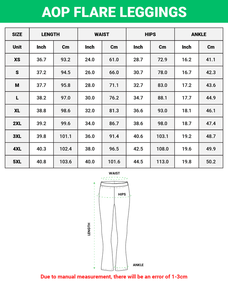 Floral Yoga Leggings, Custom Floral Leggings, All Over Print Floral Pants, Floral Print Leggings, High Waist Floral Leggings, Flare Leg Floral Pants, Floral Workout Leggings, Spring Floral Leggings, XS-5XL Floral Leggings, Floral Gym Leggings, Custom Printed Yoga Pants, Standard Fit Floral Leggings, Floral Lounge Leggings, Cute Floral Print Leggings * Product Details: + All-over Print High-Waist Standard Leggings: No matter you go out or get exercise, our custom All-over Print High-Waist Standard Leggings will around you in the comfort and stylish. Mix and match them with tank tops, t-shirts… for varied styles and looks. It will be never run out of wardrobe ideas. They are a perfect fit for work, play, or casually relaxing at home. A body-hugging fit offers maximum comfort for you. - Material: 92% polyester, 8% spandex – Soft, elastic, and breathable fabric that is perfect for athleisurewear. - Four-way stretch offers maximum stretch for a wide range of motion and superior comfort. - High waist design ensures great tummy control so you can show up confidently and gives your best. - Thick, non-see-through material even when stretched, prevent the possibility of any awkward moment during your exercise sessions. - Sizes: XS-5XL – Wide range of sizes to fit various body types. + All-over Print Flare Leggings: They are suitable for sports activities such as yoga, jogging, or gym. They can also be mixed with other outfits, such as hoodies or bomber jackets, to create trendy street outfits. The body-hugging design brings you maximum comfort. - Material: 92% polyester, 8% spandex - soft, tight, and snug, giving the wearer a comfortable feeling. - Four-way stretch provides maximum stretch for a wide range of motion and superior comfort. - The high waist and cross waistband design help control the belly so you can confidently appear and perform at your best. - These pants are designed with flared legs from the knee down, cleverly concealing the wearer's leg flaws. - The thick material is not see-through even when stretched, preventing any awkward moments during your workouts. - Size: XS-5XL - Many sizes to fit many body shapes * Processing and handling time: This is Print on Demand (PoD) product, it will take 1 – 5 working days for production. Items which have QC problems may need more time for production. * Shipping/ Transit time: Domestic order is expected to deliver within 5-10 business days. International order is expected to arrive within 7-15 working days. Depending on product type. * Cancellation: We can only accept the cancellation if item is still in processing stage. We have no way to hold item once it is in production stage. Normally items will be moved to production 1 day after purchasing. * Refund/ replacement/ return policy: Please contact us within 30 days after receiving item for any question. Basically, we are not able to offer refund/ return/ replacement due to wrong selection of color, size, changing mind, second thought. Thank you for shopping with us! Listing and template services provided by inkFrog