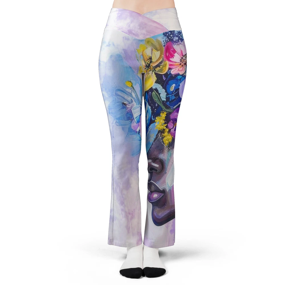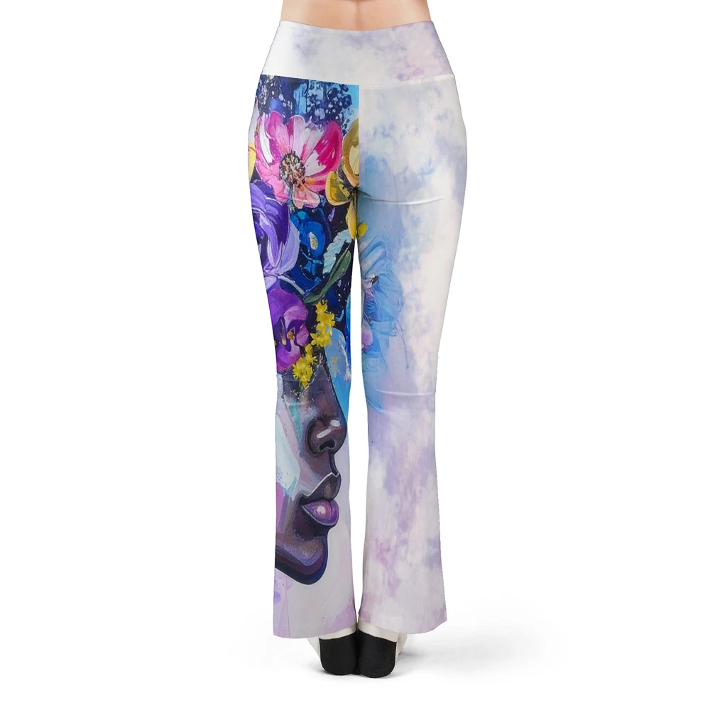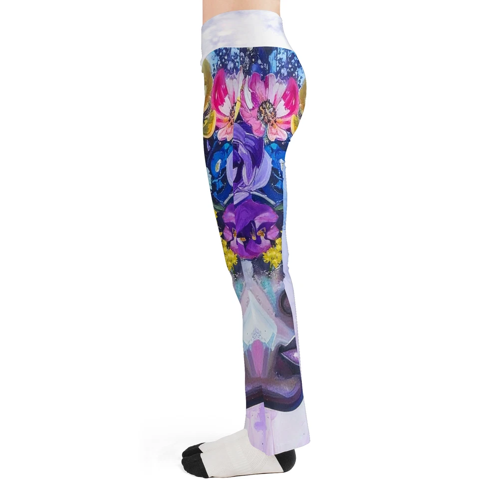 Floral Yoga High-Waist Flare Leggings Custom Print Sizes XS-5XL