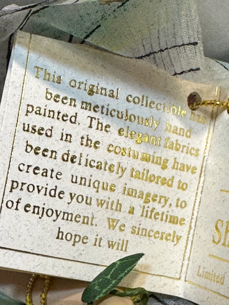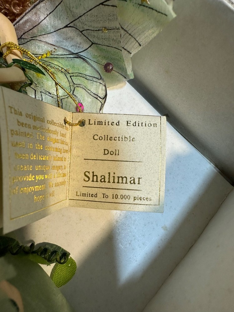 The Florence Maranuk Collection Garden Fairy Shalimar Doll is a hand paintedcollectible featuring a fairy theme from the fantasy genre. Created by the brand Florence Maranuk, this unique doll is whimsical and magical, making it a charming addition to any fairy collection. With intricate details and a playful design, this doll is sure to delight collectors and fans of fantasy and mythical creatures. Comes still fastened in original packaging