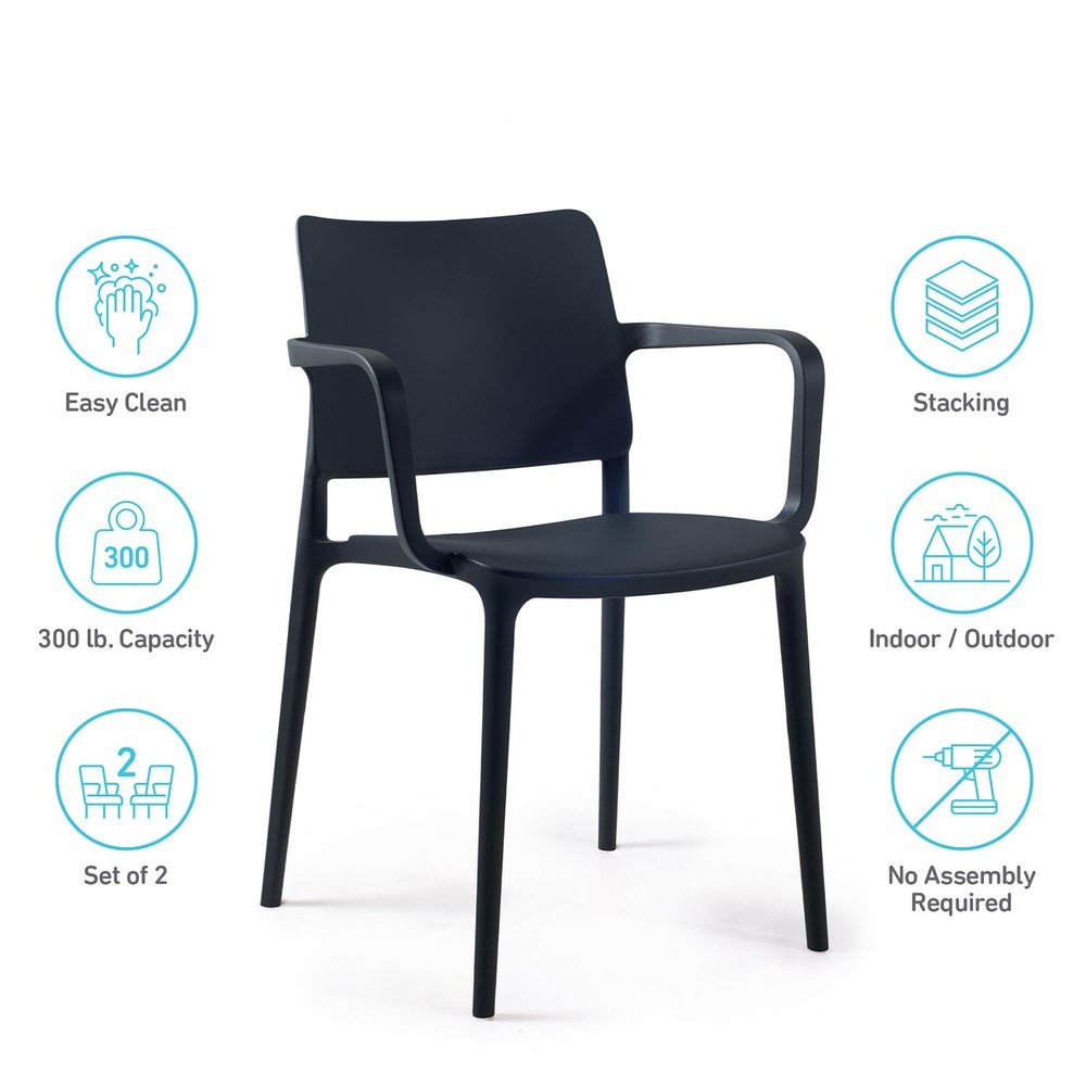 Item Package Quantity: 1 Frame Material: Resin Material: Polypropylene Furniture Finish: Plastic Item Display Weight: 9.48 Arm Style: Armchair Model Number: Florence Modern Number Of Boxes: 1 Maximum Weight Recommendation: 300.0 Part Number: Jk8050Black2 Brand: Does not apply gtin13: 0847918138735 Color: Black Package Dimensions LxWxH: 36.0x25.0x24.0 Inches Recommended Uses For Product: Dining Item Shape: X-Shape Room Type: Outdoor, Patio Garden, Garden, Balcony, Poolside Form Factor: Stackable Chair Seat Depth: 21.0 Seat Material Type: Polypropylene + Gfr Furniture Leg Style: Straight Leg Unit Count: 1.0 Weight: 23.9 Pounds Pattern: Solid Size: Set Of 2 EAN: 0847918138735 Indoor Outdoor Usage: Outdoor, Indoor Age Range Description: Adult Type: Does not apply Back Style: Solid Surface Recommendation: Hard Floor Included Components: Chair ISBN: 0847918138735 UPC: 847918138735 Chair Backrest Width: 22.16 Assembly Instructions: Already Assembled Care Instructions: Wipe Clean, Spot Clean Style: Modern