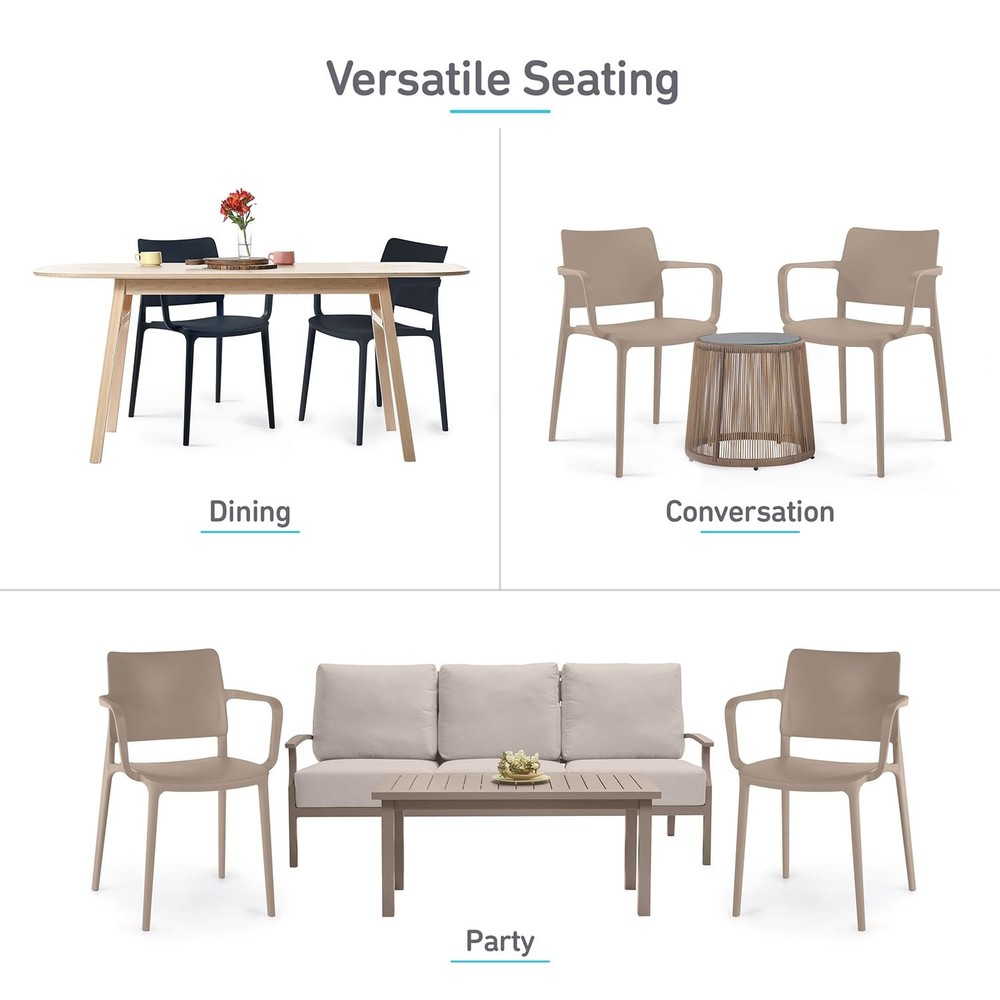 Florence Modern Stacking Plastic Resin Patio Dining Armchair for Indoor Outdoor Use