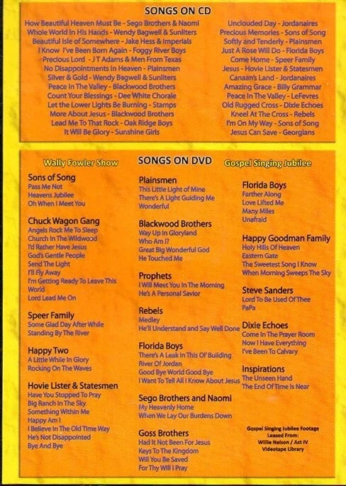 2 DVDs - The Wally Fowler Show, 1 DVD - Gospel Singing Jubilee, 1 CD of 26 Songs all discs in very good condition