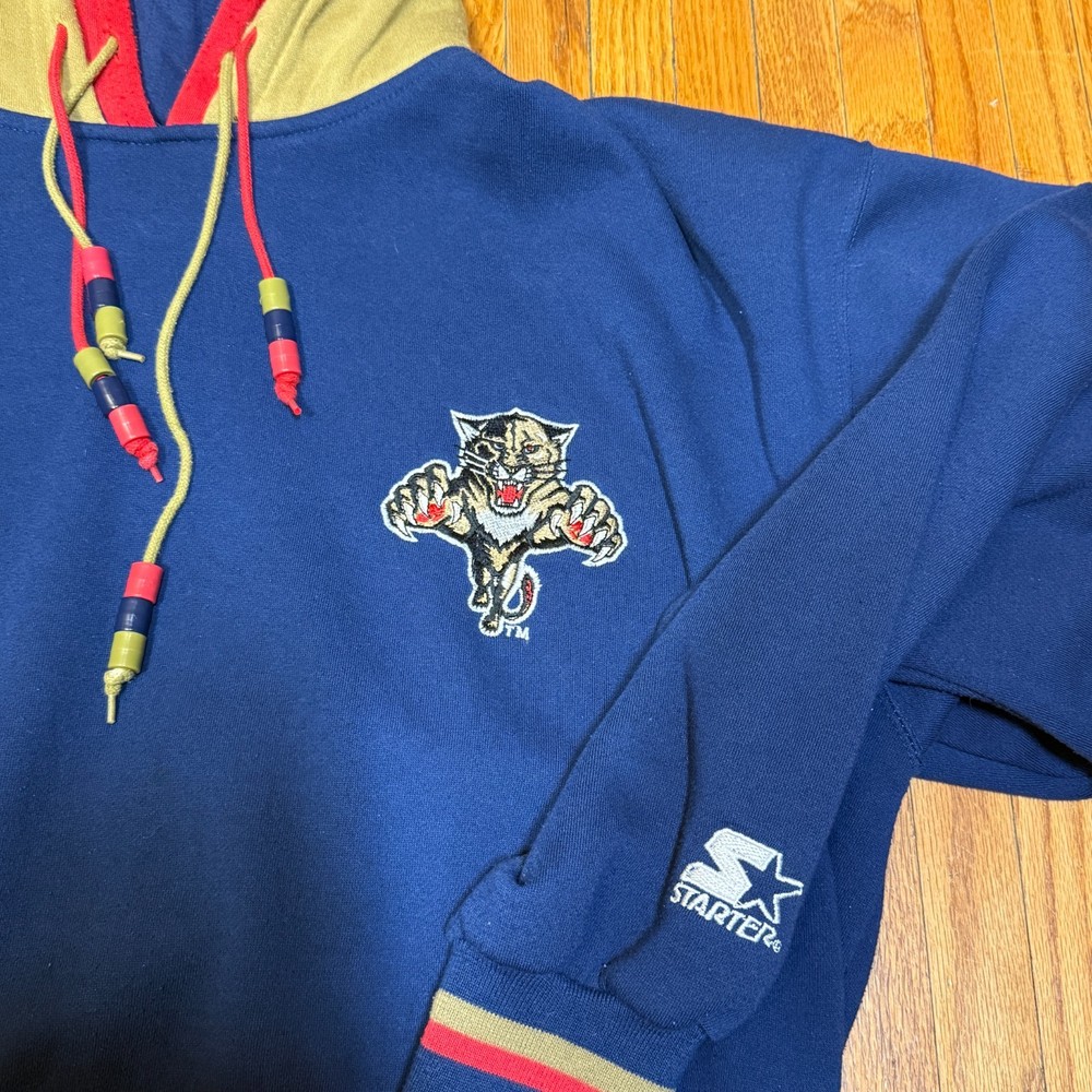 Florida Panthers NHL Vintage Red And Navy Leaping Panther Logo Starter Double Hoodie Hockey Sweater Men's Extra Large Size: Men’s Extra Large Brand: Starter Color: Navy Blue, Red Condition: Pre-Worn And In Great Condition. There's is some wear on one of the sleeves in the 7th photo. All Logos, Letters And Numbers Are Sewn On