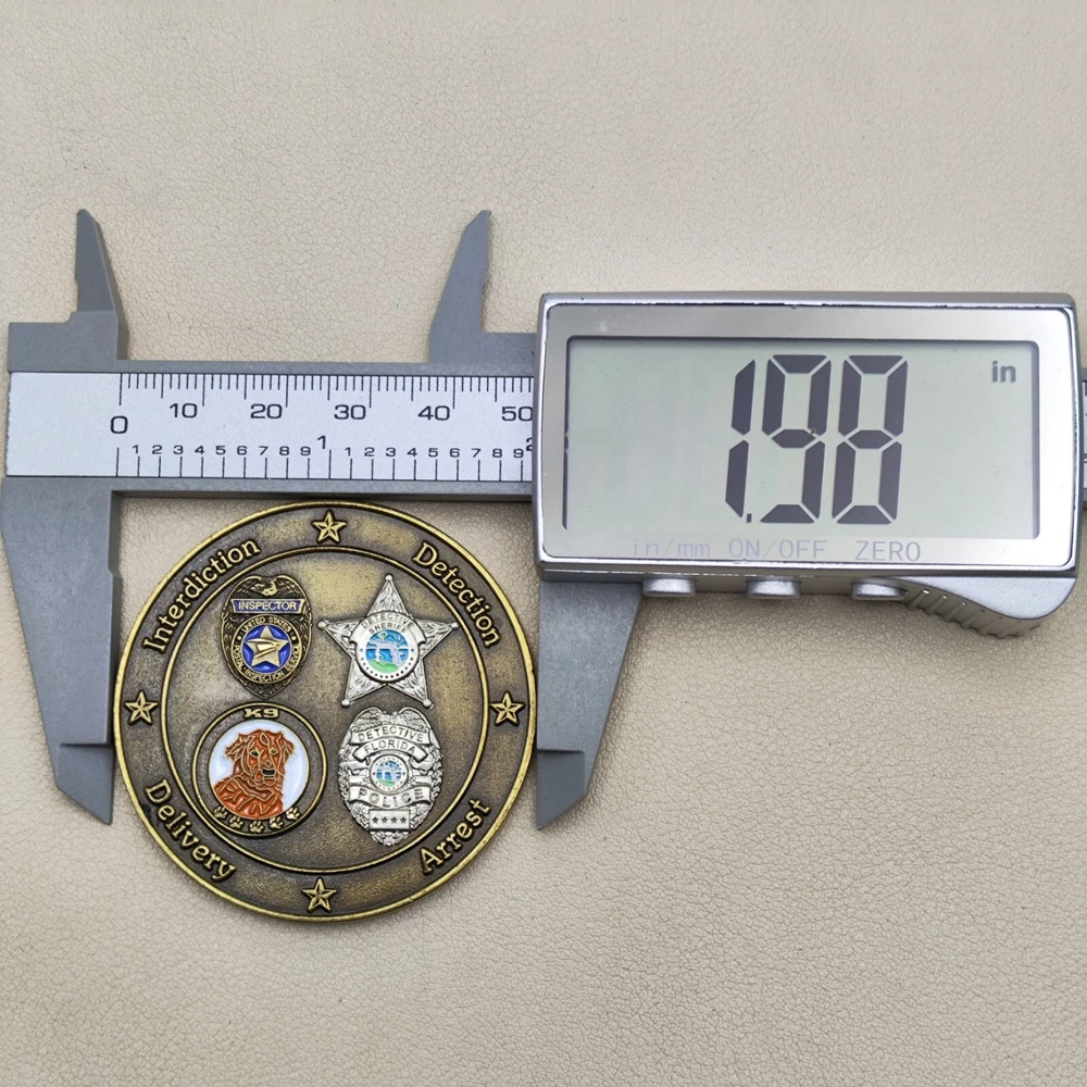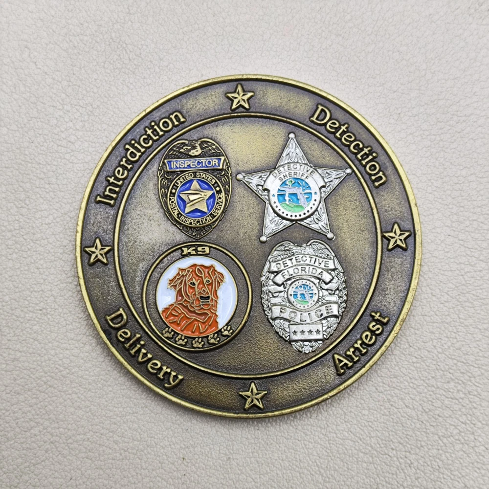 TITLE: Florida Police Department Drug Interdiction Challenge Coin SIZE : Measures Approx 1.98" Used coins are inevitably flawed please see pictures PAYMENT : We support multiple payment methods and ship within 5 days of payment SHIPPING : We offer free shipping, and your purchase will be carefully packaged and sent to you with tracking information through eBay SERVICES : You can contact us at any time if you have any questions, We will get back to you as soon as possible to solve your problem If you are not satisfied with your purchase for any reason, Please contact us before leaving neutral or negative feedback and we will solve the problem properly for you