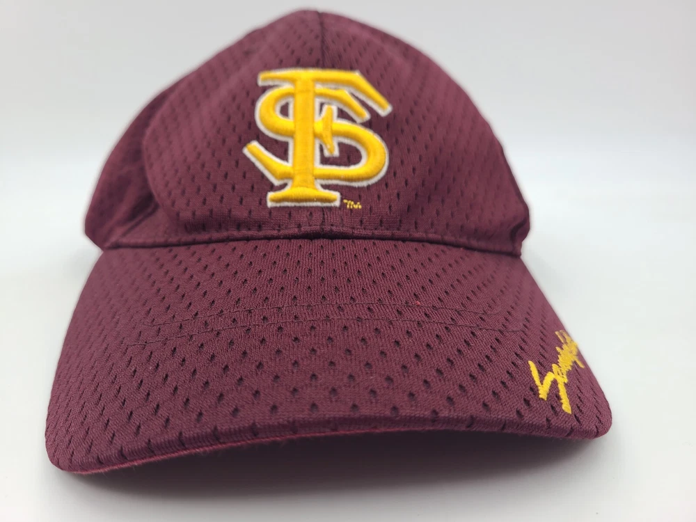 The tag says L-XL, but it seems smaller and is probably best suited for M-L sized heads. Also has some wear underneath the brim as seen in photos. Florida State University Seminoles Twins Enterprise Fitted (Seems M-L) Hat Cap. EACH ADDITIONAL HAT PURCHASED IS ONLY $1 ADDED SHIPPING!