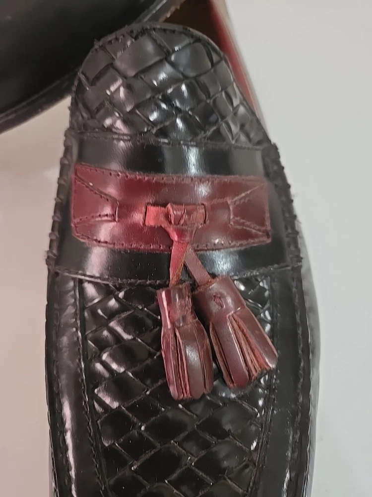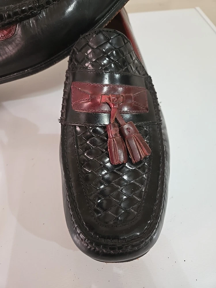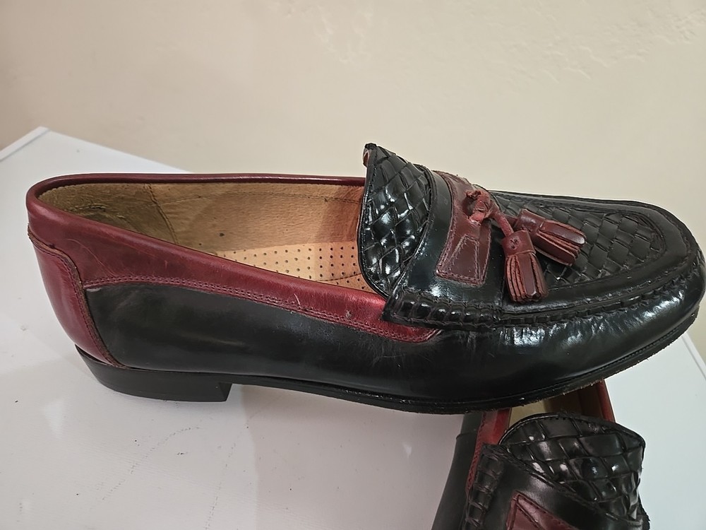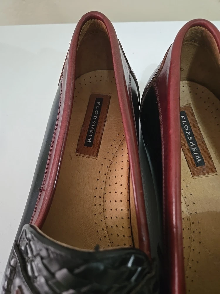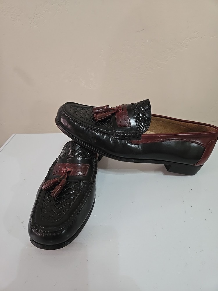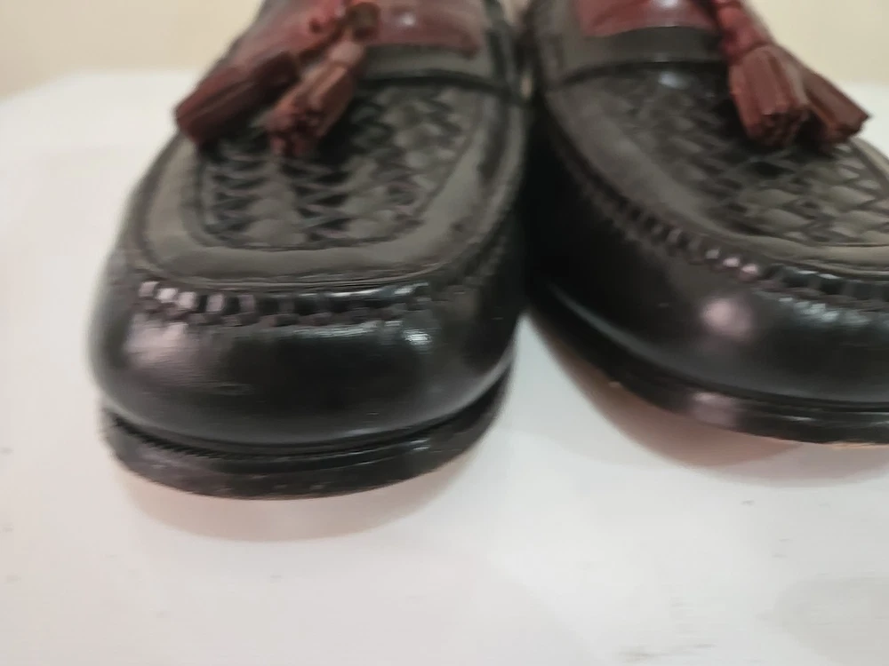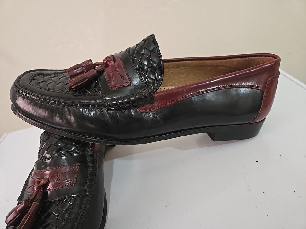 Florsheim Men’s 14D Tassel Loafers Black Brown Leather Dress Shoes Slip On ✅ DESCRIPTION Step into classic style with these Florsheim Men’s Tassel Loafers , size 14D , featuring a rich black & brown leather upper and timeless slip-on design. Perfect for business, formalwear, or everyday polished outfits. Quality construction and comfortable fit you expect from Florsheim. Features Brand: Florsheim Men's Size: 14D Color: Black / Brown Style: Tassel Loafers Upper Material: Genuine Leather Outsole: Leather/Rubber Slip-on dress style Classic, timeless design Condition Pre-owned. Normal light wear from use. No major defects. Clean, smoke-free.
