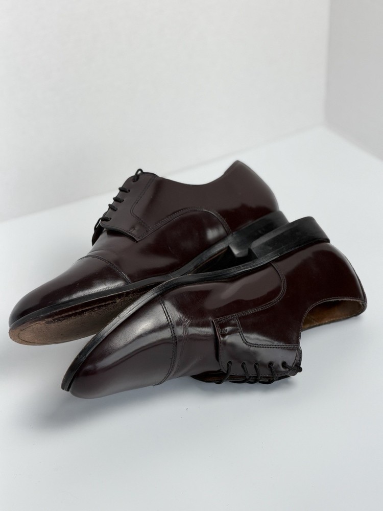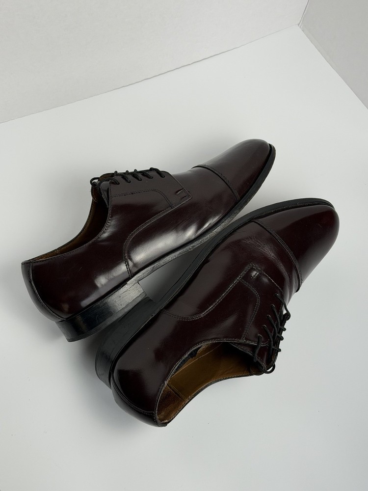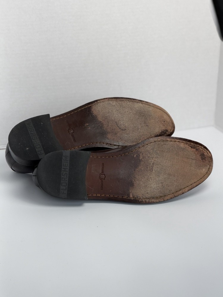The product is a pair of Florsheim men's dress shoes in size 9.5. Made of red leather, these shoes are designed for formal occasions and add a touch of sophistication to any dressy outfit. The Florsheim brand is known for producing high-quality, stylish footwear, making these shoes a reliable and fashionable choice for any man looking to elevate his shoe game.