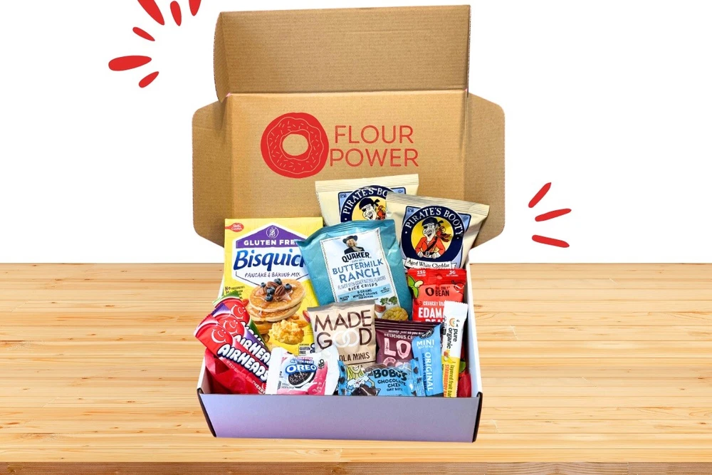Flour Power hand curates beautiful boxes full of fun, new and exciting gluten free foods! From treats to snacks to cooking and baking mixes. Each month is a slightly different box so you never get the same things twice!