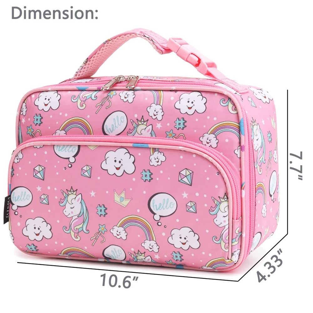 FlowFly Kids Lunch box Insulated Soft Bag Mini Cooler Back to School Thermal Meal Tote Kit for Girls, Boys, Rainbow ✿ Material:The FlowFly reusable Lunch Bag is made of the highly durable 600D Polyester,food safe PEVA lining and sturdy zippers. ✿ Good Use:Premium fabric construction makes this small lunch pail durable and easy to clean. With ice pack,insulation helps retain hot and cold temperatures whole day to improve food quality, freshness and taste,keep the meal healthy.It is moisture resistant,quick and simple Organization,perfect for Age3+ kids and On-The-Go Parents. ✿ Travel-friendly design – Each portable,compact, lightweight lunch pail can hold a good-sized container with plenty of room for snacks, utensils and juice boxes. Features include a zippered front pocket for hiding a surprise dessert or fun note, a handy inner mesh pouch perfect for napkins and utensils,you could secure water bottles or ice packs in the box. ✿ Spacious Design – Measures W: 7.7 x L: 10.6 x H: 4.33 inches. You’ll find it super spacious and will have no problem fitting your meat and milk inside,Go ahead, pack that extra treat! This FlowFly lunch pouch suit to children adult, men, women,work,office,beach.It is suitable for fitting into backpack . ✿ Customer Satisfaction – PVC, BPA and Phthalate-free makes this an eco-friendly option with an unmatched quality and a reliable replacement for service you can trust ✿ Recommended Age Grade: 3+ years Recommended Age Grade: 3+ years Product Features: Size: W:7.7 x L:10.6 x H:4.33 inches, Rectangle Material: durable 600D Polyester,food-safe PEVA lining, and Sturdy zippers Zippered Front Pocket and inner mesh pouch: A zippered front pocket for hiding a surprise dessert or fun note,a handy inner mesh pouch perfect for napkins and utensils, you could secure water bottles or ice packs inside the lunch pail. Soft handle: heavy-duty handle for hand carry Premium fabric construction: make this compact, lightweight lunch bag durable and easy to clean. Insulation helps retain hot and cold temperatures the whole day to improve food quality, freshness, and taste. Also, it can keep the meal healthy. Product Description: The FlowFly reusable lunch bag has helped millions of families take safe, healthy meals everywhere. The roomy, spacious, insulated interior and premium fabric construction will make sure you have a nice meal, this portable lunch pail could be used for children, adults, men, women for light meals and drink, it suits for work, school, beach, travel, picnic, hiking. The adorable lunch kit is moisture resistant, quick, and simple organization, perfect for Age 3+ and on-the-go parents. Shipping We offer FREE SHIPPING on all orders! We ship within Three business days of payment, usually sooner. We use a selection of shipping services such as UPS, FedEx, USPS etc. We only ship to the lower 48 states, no APO/FPO addresses or PO Boxes allowed. Local pickups and combined shipping options are not provided at this time. Return 🚚 You can return a product for up to 30 or 60 days from the date you purchased it. 🔄 RETURN FREE 📦 Any product you return must be in the same condition you received it and in the original packaging. Payment We accept payment by any of the following methods: PayPal, Visa, Mastercard, American Express, Discover etc. Feedback Customer satisfaction is very important to us. If you have any problem with your order, please contact us and we will do our best to make you satisfied. Contact Us If you have any queries, please contact us via ebay. We usually respond within 24 hours. Please visit our eBay store to check out other items for sale! Thank you for shopping at our store.