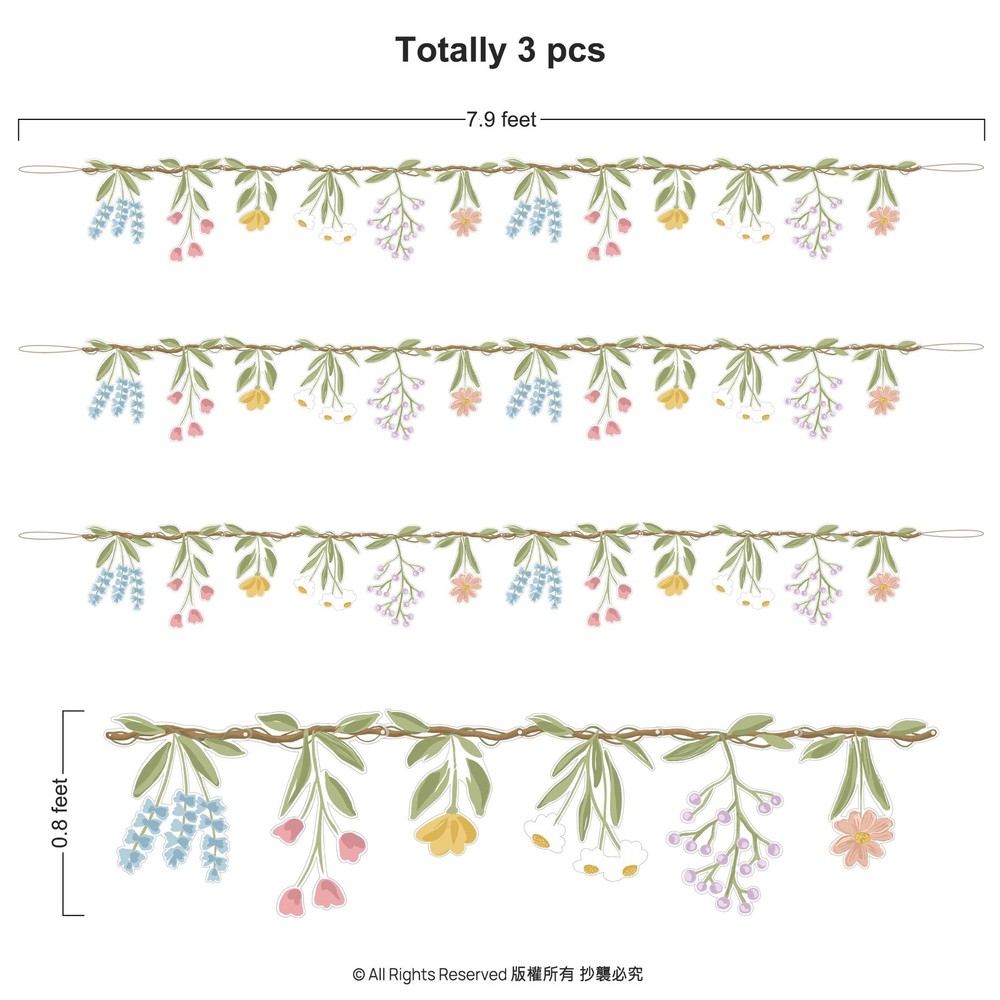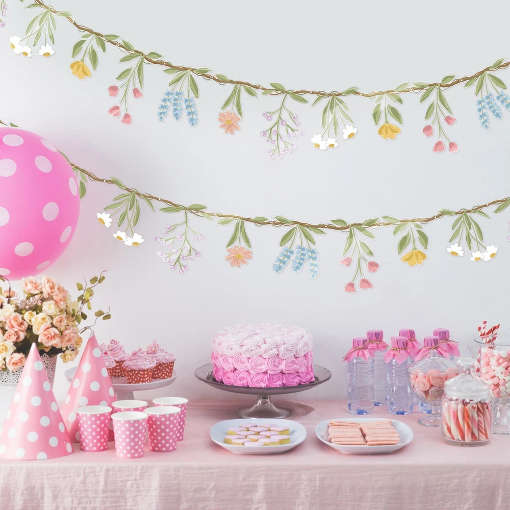 Package:This set includes 3pcs luxurious 7.9-foot plastic flower banner, each bursting with a vibrant mix of wildflowers, lush greenery, and delicate branches for a naturally enchanting look. The wildflowers are permanently attached, ensuring a tangle-free, hassle-free decorating experience. These wild flower garlands are perfect for creating floral backdrops, spring-themed banners, classroom decor, or ceiling draping, transforming any space into a blooming paradise or botanical theme party. Exclusivity: What makes this wildflower garland collectionspecial is its hyper-realistic wildflower blend, featuring wildflowers, leaves and other charming blooms for an authentic garden feel. The whimsical woodland design adds a touch of magic, making it ideal for fairy tale party, boho chic weddings, cottagecore baby showers, baby in bloom, shabby chic, or floral first birthdays. Designed for both indoor and outdoor use, perfect for garden party, porch decor, or rustic outdoor weddings. Versatile Themed Decor: These wildflower garlands are a must-have for silly goose baby shower, english party, Easter, woodland baby showers, Wild One birthday party, garden tea gatherings and spring bridal showers. They effortlessly enhance photo backdrops, dessert tables, arches, and mantles, for a floral-filled atmosphere. Whether you're hosting an enchanted fairy party, a rustic farmhouse wedding, or a bohemian-themed event, these wildflower garlands add instant charm and sophistication. Guideline: No DIY needed! Simply drape or hang these wild flower garlands as a charming accent for your garden tea party decorations, woodland-themed events, baby bloom decorations, garden party, english tea party or fairy birthday party decorations. Their lightweight, flexible design makes them easy to shape around walls, fences, railings, or chandeliers. Plus, they’re durable and reusable, designed to withstand multiple events. Use them on mantles, walls, or tables for a captivating display. Durable and Eye-Catching: Crafted with care and attention to detail, these artificial flower garlands are durable, reusable, and lightweight. Whether used as a floral photo backdrop, a whimsical ceiling garland, or an elegant table accent, they bring a garden-inspired touch to any setting. Ideal for spring garlands, easter decor, summer garlands, garden party, baby in bloom, wildflower birthday decorations, baptism or creating a fairy party floral backdrop, ensuring your event feels magical.