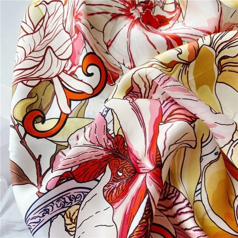 $ 8.82Pink Mulberry Silk Shawl with Floral Print 170cm Satin Scarf