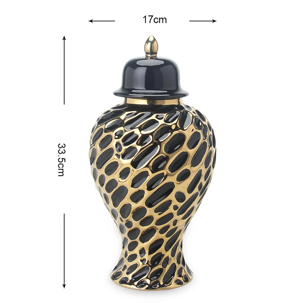 Description: 【Ceramic Jar】: Traditional style ceramic decorative storage container with creative exquisite lid, ceramic ginger jar with smooth, delicate, elegant for home living room decorations. 【High Quality Material】: The porcelain ginger jar is made of High quality ceramic material, durable and firm, and painted exquisitely, the jar mouth is sleek, neat, and beautifully crafted artwork, and it also as a decorative vase for flowers, florals, and plant display. 【Multifunction】: Ceramic storage jar organizer is featured with a porcelain mouth, and efficient sealing, used as a tea canister, or kitchen storage placed in your kitchen or dinner table. 【Home Decorations】: Delicate artwork and Chinese tradition are aesthetically mixed and for a striking look; Ceramic vases are suitable for various occasions like offices, meeting rooms, bedrooms, parties, studies, etc. 【Nice Gift】: Temple jar is a great gift idea for any special occasion like Birthday, Holiday, Farmhouse, Wedding, Anniversary, Housewarming, and more. Specification: Material: Ceramic L: 33.5cmx17cm/13.19inchx6.69inch S: 26cmx13cm/10.24inchx5.12inch Package Includes: 1 Porcelain Ginger Jar Note: Please allow slightly errors due to manual measurement and different monitors.