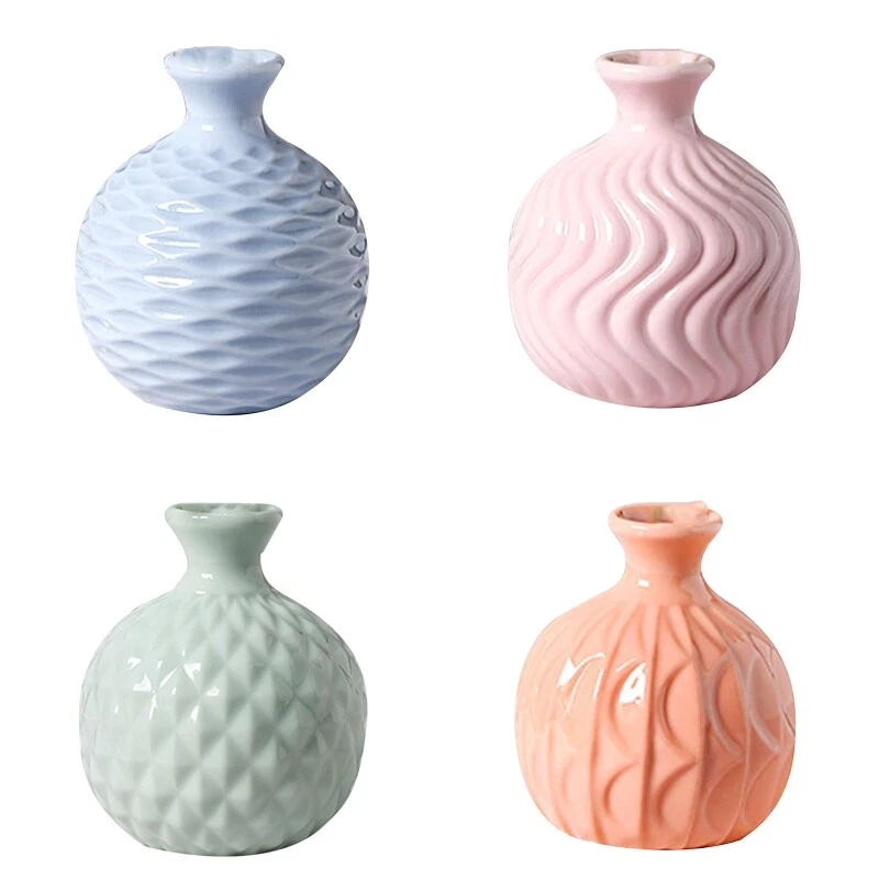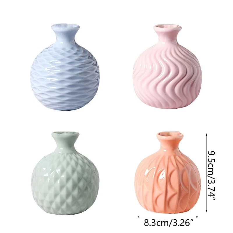 Features: and high ceramic fired under temperatures to give them a sturdy and durable. to display flowers,pampas grass,dried flower,faux florals,stems,bouquets for a for of color. This decorative vase set can be used in many different ways.Perfect for your bookshelf,coffee table,tabletop,shelf,farmhouse,fireplace,or dining table centerpieces; The vase measuring at 3.27x3.74in , small vase not large. Specifications: Size: approx 8.3x9.5cm/3.27x3.74in Ceramic Vase Color: / Blue / Orange / Green Package Includes: 1 PC x Ceramic Vase note: Light shooting and different displays may cause the color of the item in the picture a little different from the real The measurement allowed error is 0-2cm.