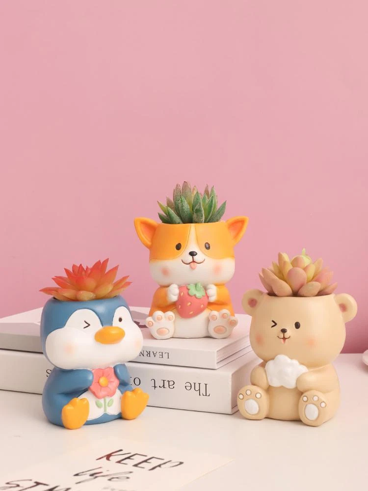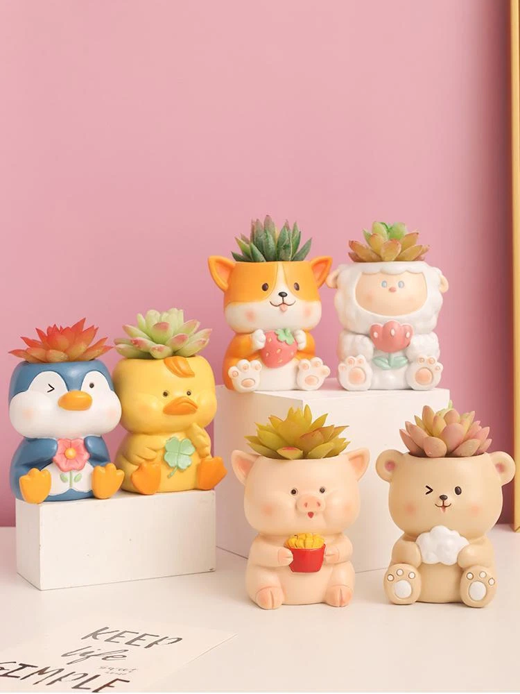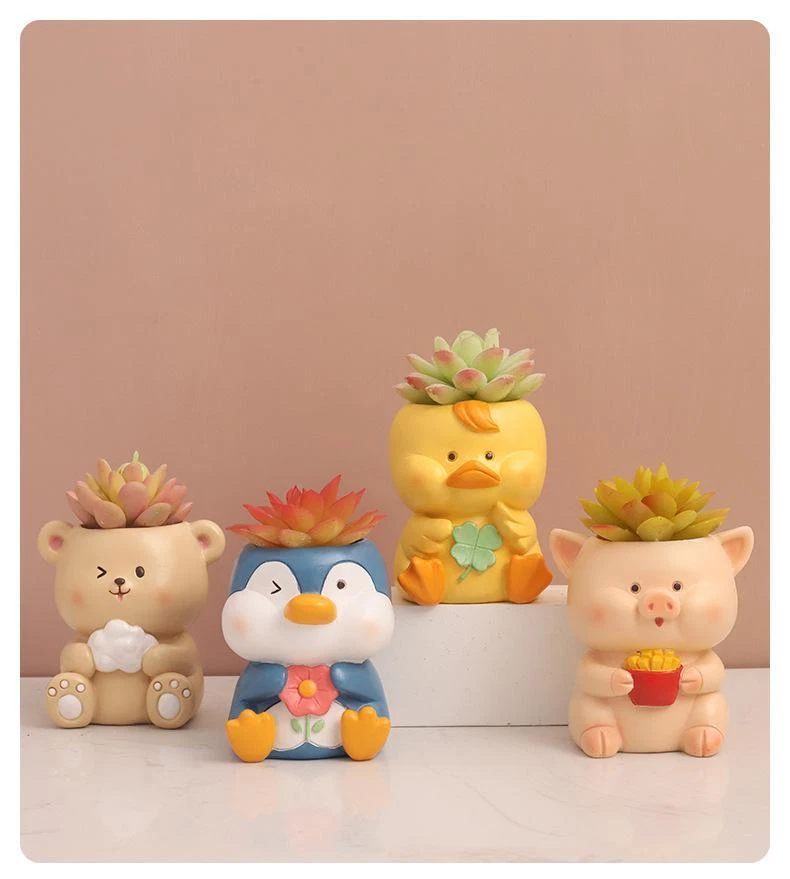 Cute Animals Planter ❥Made of high quality resin, hand-painted process. ❥Size: Please refer to the pictures ❥Multipurpose. Delicate flower pot can be used as table decorations, and can also be used as containers to place other small jewelry, pens, with a wide range of uses. ❥Great choice for desk, home, shop, office decoration. Perfect for gift. ❥Package Included: Planter ONLY, plants NOT included.