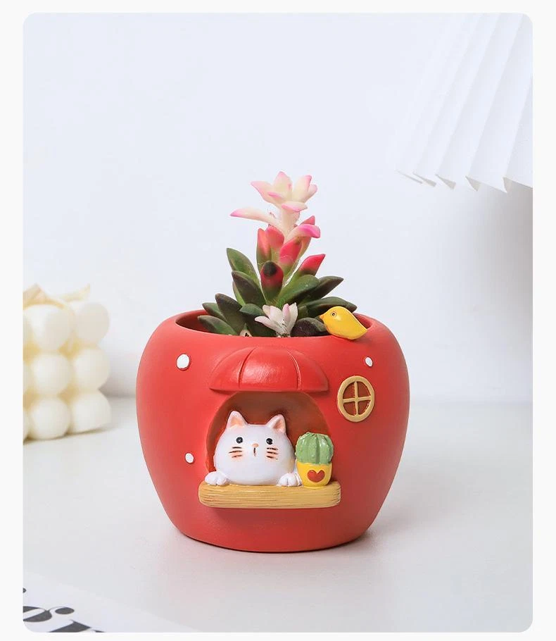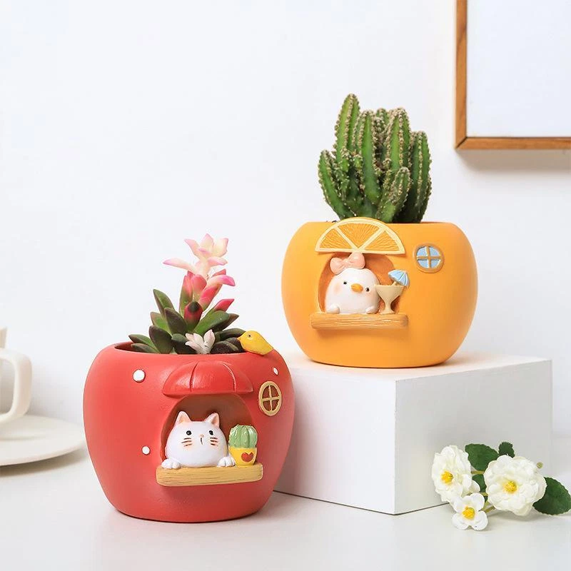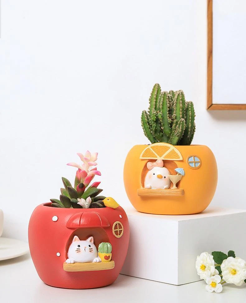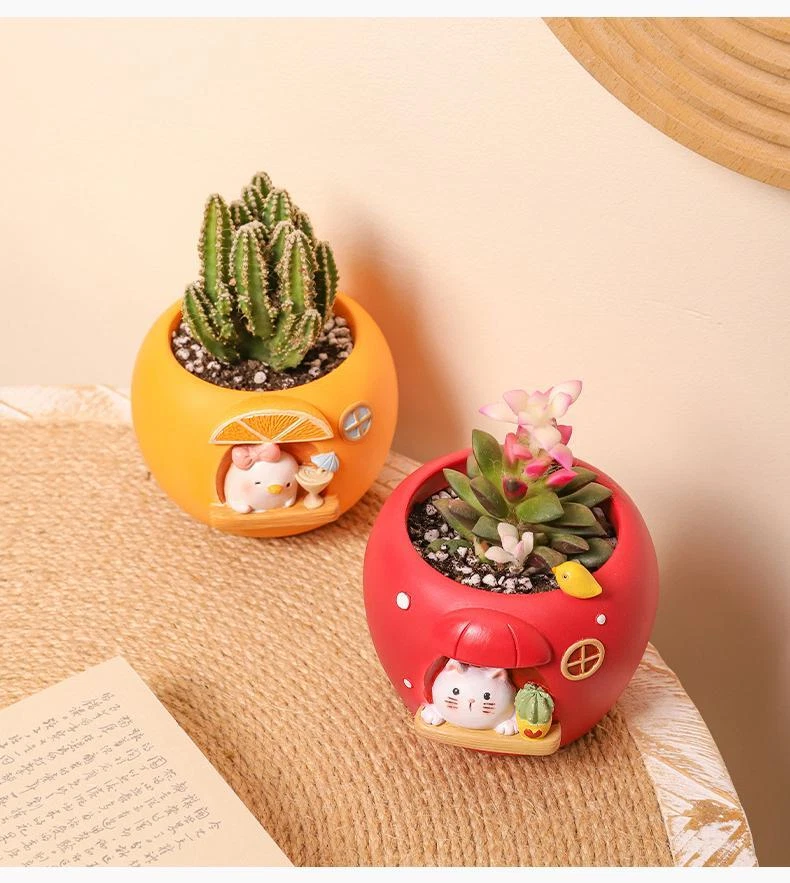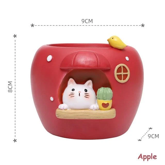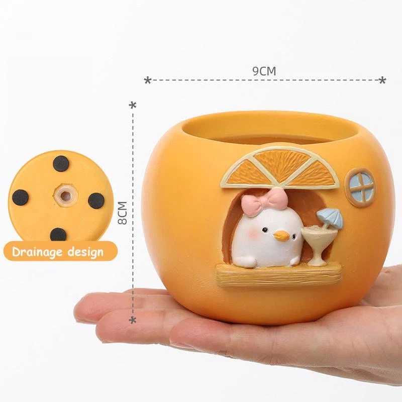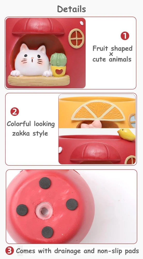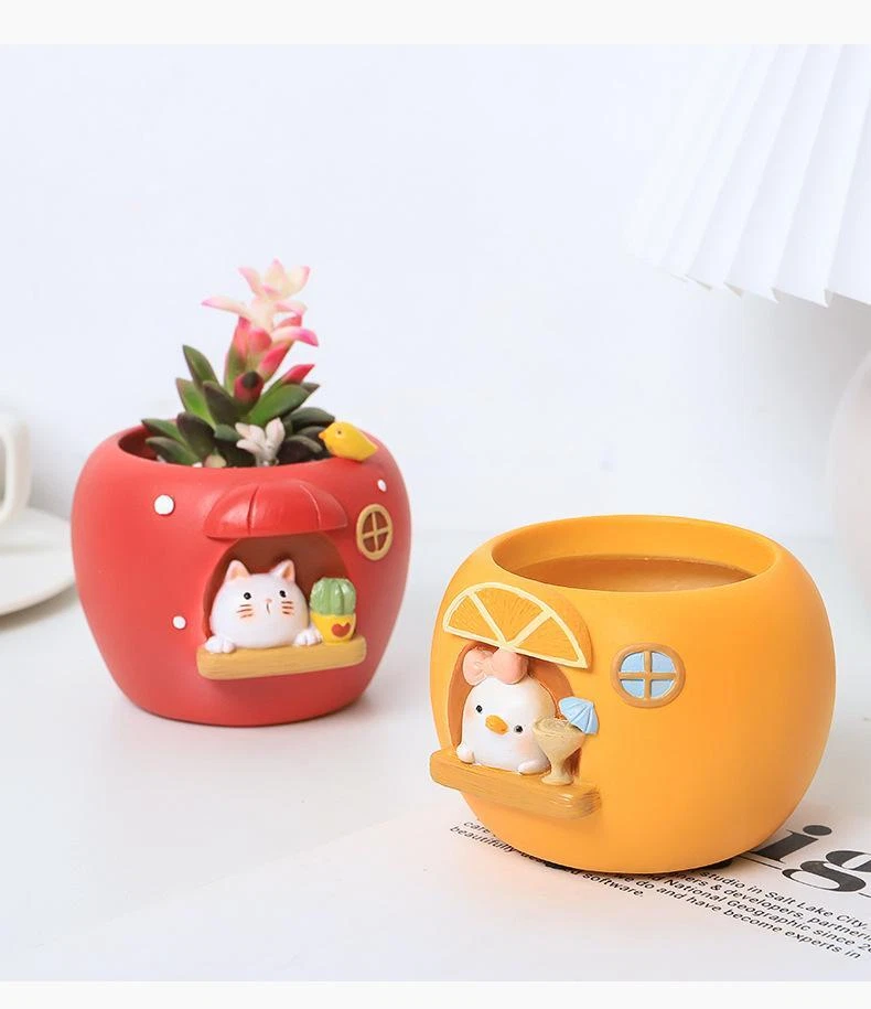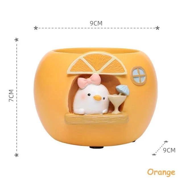Fruit x Animals Series Planters ❥Made of high quality resin, hand-painted process. ❥Size: Please refer to the pictures ❥Multipurpose. Delicate flower pot can be used as shelves, coffee tables, farmhouse decorations, can also be added with bouquets to beautify and enhance decorations, and can also be used as containers to place other small jewelry, pens, with a wide range of uses. ❥Great choice for desk, home, shop, office decoration. Perfect for gift. ❥Package Included: Planter ONLY, plants and ornaments are NOT included.