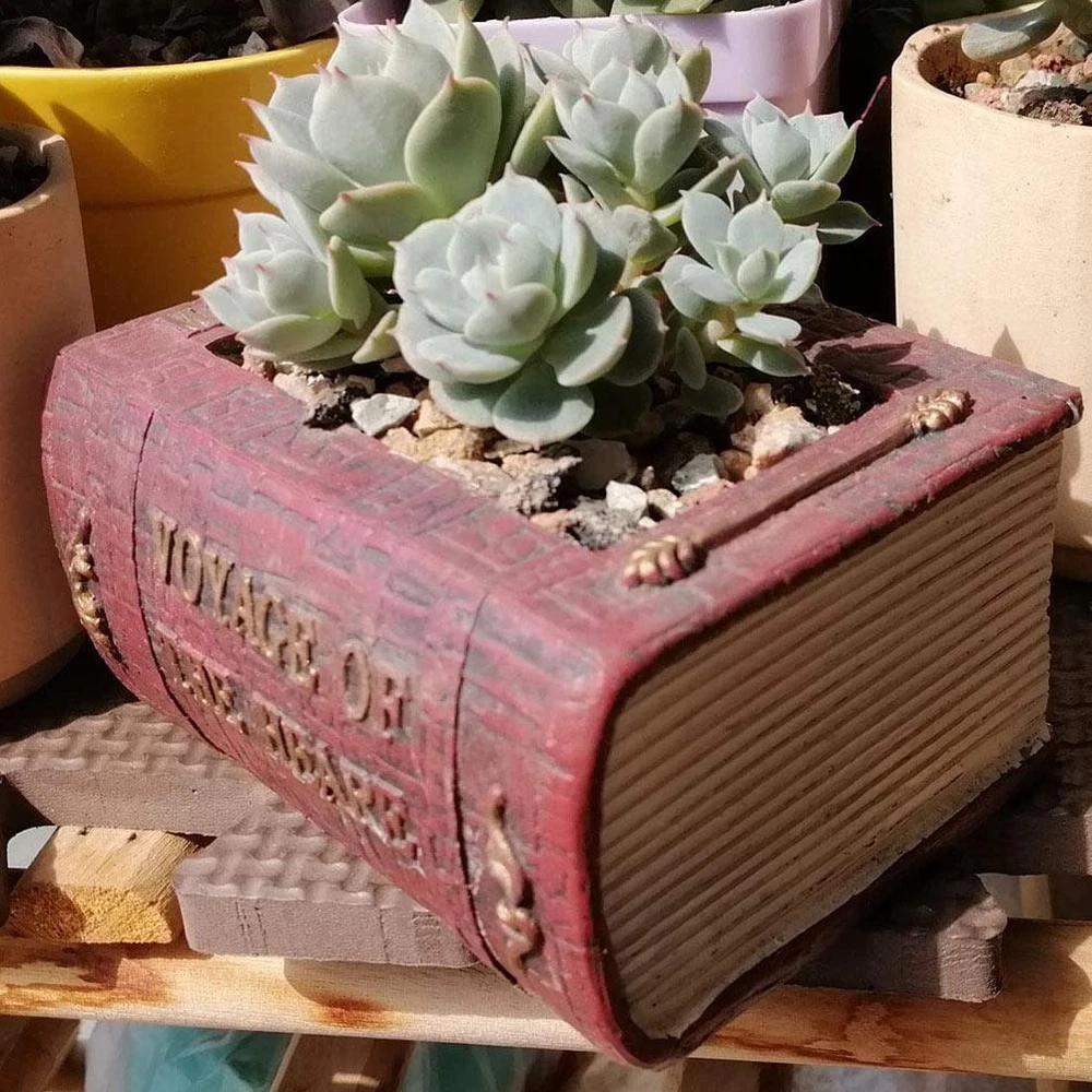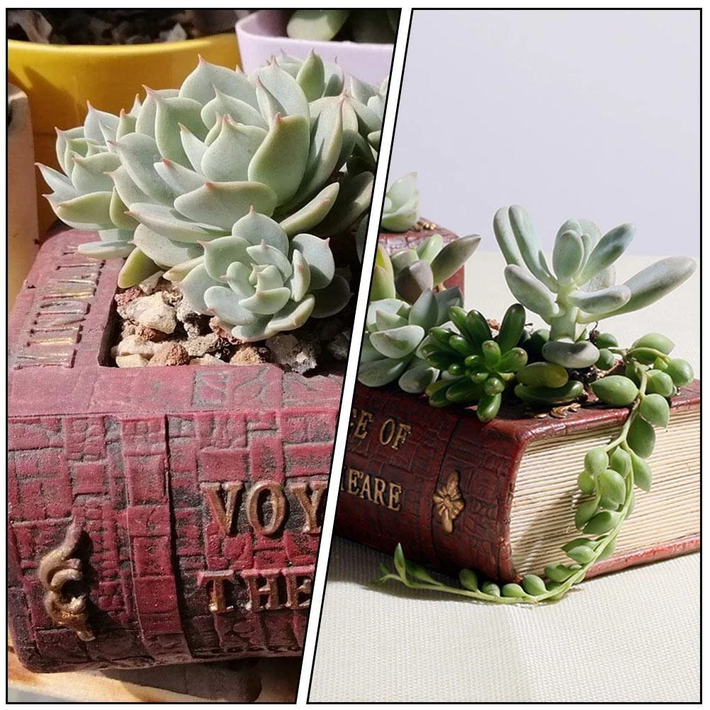 Description Made of great quality material, durable and safe for long lasting use. Save space. This flower pot is small but practical for saving most space of your desk or windowsill. Not only it is a flower pot, but also it can be used as a tabletop decoration. Features - Color: Dark red. - Material: Resin. - Size: 10.00X7.50X5.00cm;/3.93X2.95X1.97in; - The flower pot is made from good quality material for long time and durable use. - The creative book design will bring a different feeling for your home and garden. It is suitable for plant growth. - It is not only a flower pot, but also can be used as a desktop ornament. - This plant pot is suitable for decorating your garden, balcony, office, etc. - It is a perfect and practical gift for your friends. They will love it very much. 1 x succulent flower pot