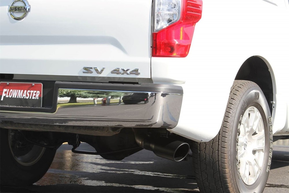 $ImageURL1$ Flowmaster 717910 FlowFX 409 SS Cat-back Exhaust System for 17-21 Nissan Titan PART NUMBER: 717910 BRAND: Flowmaster DESCRIPTION Flowmaster 717910 FlowFX 409 SS Cat-back Exhaust System This performance exhaust system bolts up to the factory cat pipes with large dual 2.5-inch mandrel-bent tubing flowing into a Scavenger Series Y-pipe for maximum flow. Our exclusive Scavenger Y-pipe creates a stronger signal than conventional y-pipes, by using two D-shaped ports back to back, giving a larger surface area than just two round pipes joined together. This creates a much stronger scavenging effect to help evacuate the cylinders during the exhaust stroke netting more power and torque. This is especially important for towing. The system flows out of the Scavenger series collector into 3-inch stainless steel tubing and the "straight-through" FlowFX muffler, which has a very deep powerful sound outside the vehicle, with a moderate tone inside the cab. The mandrel-bent tailpipe exits behind the passenger side rear tire and is finished off with a large 4.50-inch black ceramic coated exhaust tip embossed with the Flowmaster® name. The system utilizes the factory hanger locations and connections and includes all necessary parts, hardware, and detailed instructions for an easy at-home installation. Notes: Fits 2/4 Wheel drive and all wheelbases. Does Not fit XD models. Features Large 4.50-inch Black Ceramic Coated Stainless Steel Tip Scavenger Series Y-pipe for Maximum Torque Gains FlowFX "Straight-through" Performance Muffler Mandrel-bent Stainless Steel Tubing Includes All Necessary Hardware Very Deep and Powerful Sound Easy and Quick Installation Specifications Emission Code: 5 Exhaust/Muffler Series: FlowFX Exit Position: Single Side Exit Material: 409 Stainless Steel Mount Type: Uses Factory Hangers Single/Dual: Single Sound Level: Aggressive/Moderate System Type: Cat-back Tip Finish: Black Ceramic Tip Material: 304 Stainless Tip Shape: Round Tubing Diameter (in): 3 Tubing Material: 409S Stainless Steel California Proposition 65 Chemical Name: Chromium (hexavalent compounds), Nickel (Metallic) California Proposition 65 Required: Yes
