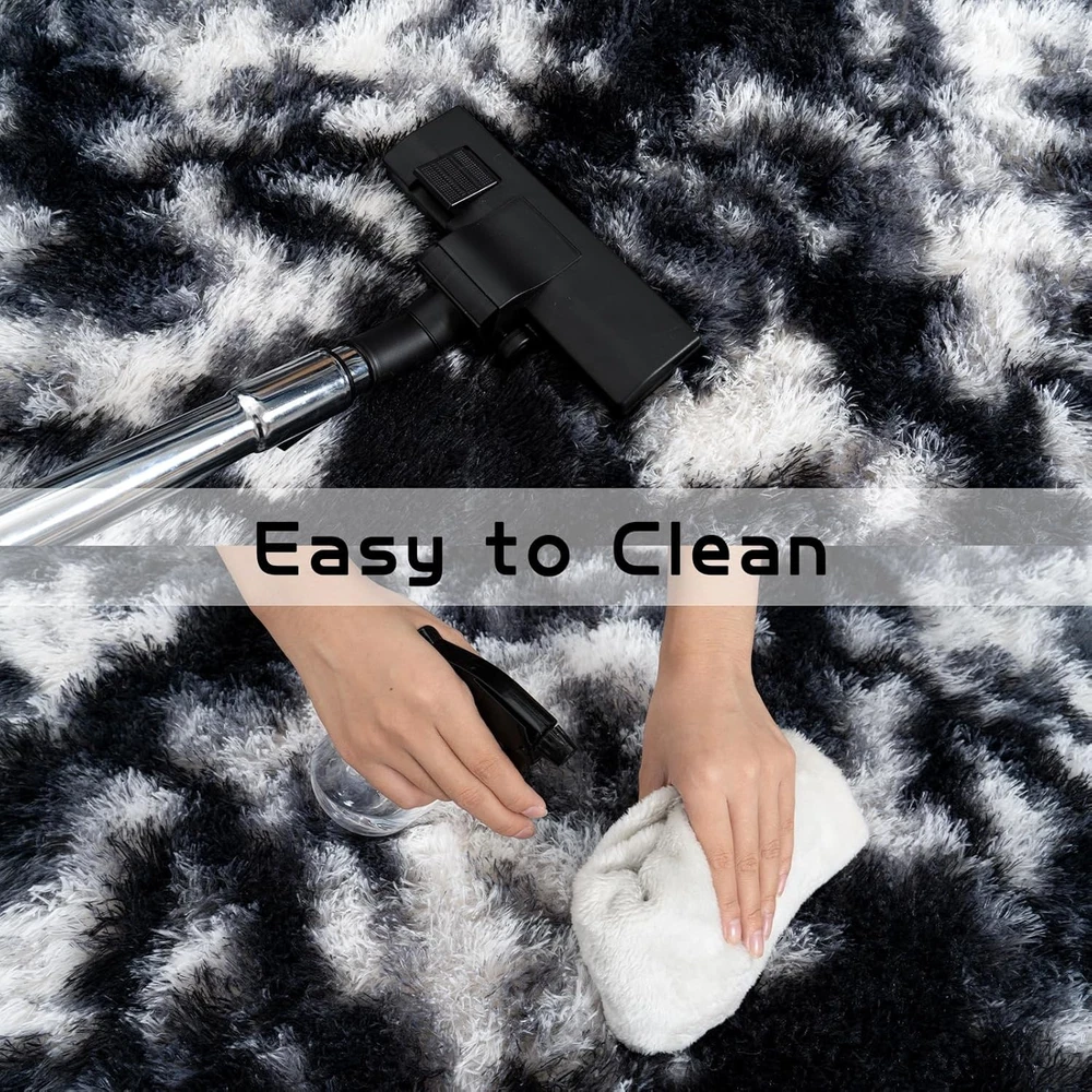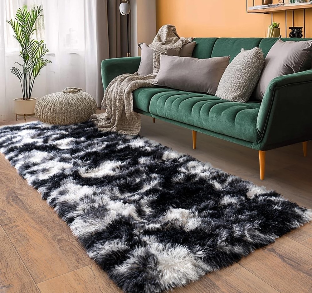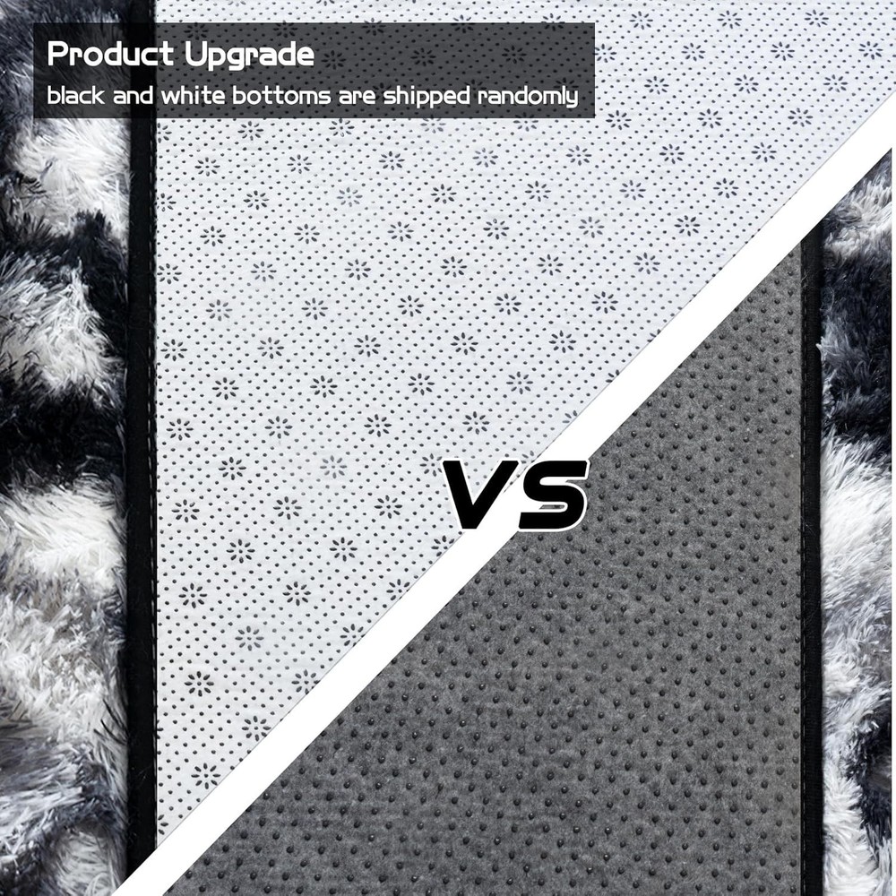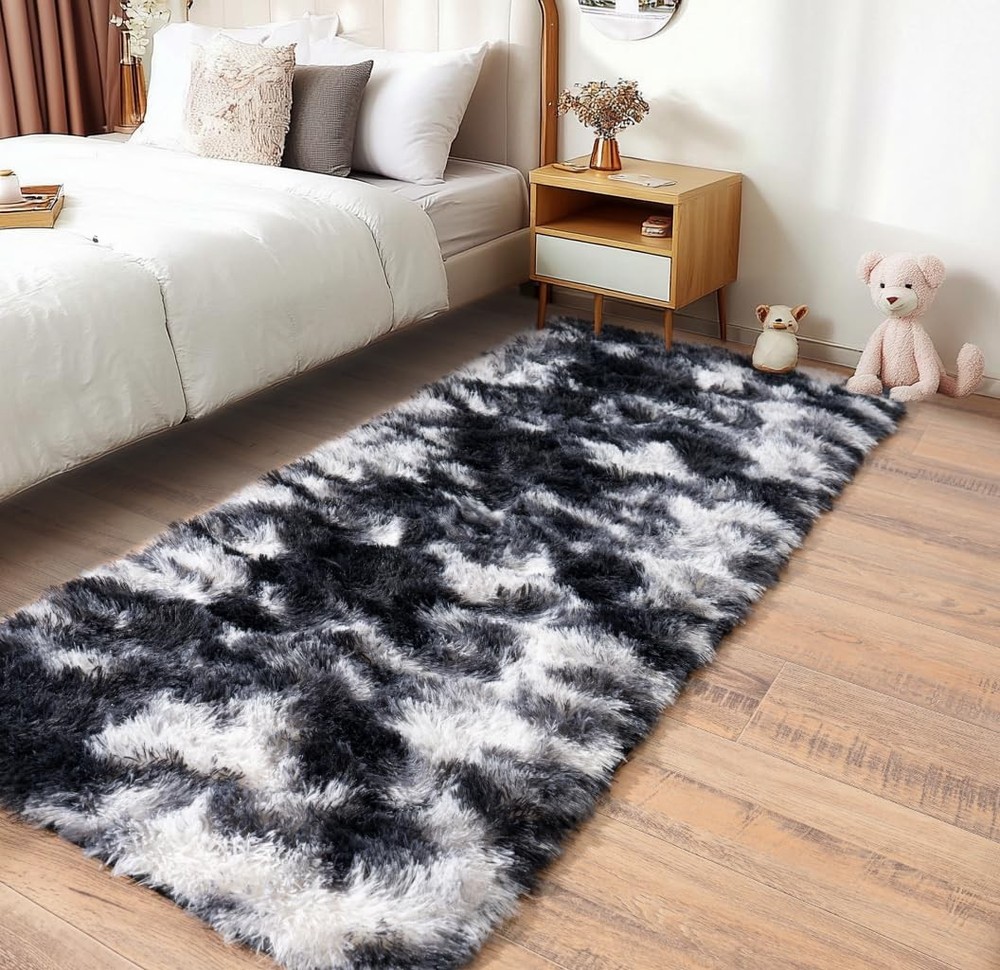 Fluffy Runner Rugs for Bedroom 2' x 6' (Rectangular), Black White Product Details Brand: Pionblank Size: 2' x 6' (Rectangular) Material: front-100% polyester, Back-PVC+Memory sponge Weave Type: Machine Made Pile Height: High Pile Construction Type: Machine Made Back Material Type: Sponge Color: Black White Indoor/Outdoor Usage: Indoor Is Stain Resistant: No Shape: Rectangular Product Dimensions: 72"L x 24"W Rug Form Type: Runner Water Resistance Level: Not Water Resistant Item Weight: 1.79 pounds Manufacturer: Pionblank Country of Origin: China Soft Material: Pionblank runner living room rugs are crafted from front polyester, back pvc and memory sponge interlayer that provide a luxuriously soft and cozy feel underfoot, adding a touch of comfort and warmth to any space Anti-Slip Properties: Pionblank 2x6 feet shaggy runner bedroom rug is designed with non-slip latex particle backing which can hold the floor more firmly, which make the shag rug more ideal for kids and pets to play on Versatile Usage Scenarios: Whether you want to enhance the comfort of your living room, create a cozy atmosphere in your bedroom, or add a touch of warm and sweet to your nursery, kids' room, playroom, our Pionblank modern plush area rug is a versatile choice Easy to Clean: Regular vacuuming or shaking off loose dirt is usually sufficient for our Pionblank rug, you also can be wiped with a damp cloth. For deeper cleaning, it can be hand-washed or spot-cleaned, then place it in a ventilated place to air dry, avoid using the dryer Precautions for Use: Avoid placing the rugs on wet or slippery surfaces to maintain the anti-slip properties. The rug is vacuum packed, please lay flat and it will fluff up back in 2-3 days