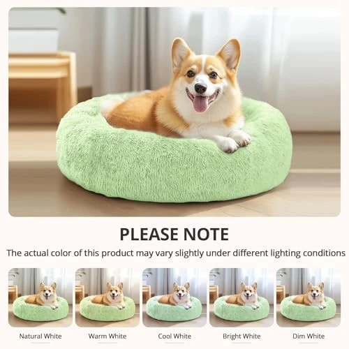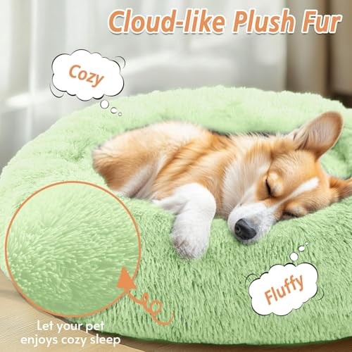 Large Anti-Anxiety Donut Dog Bed 36 Inches Fluffy Faux Fur Round Pet Bed for Dogs and Cats Up to 75 lbs Light Green Large Anti-Anxiety Donut Dog Bed 36 Inches Fluffy Faux Fur Round Pet Bed for Dogs and Cats Up to 75 lbs Light Green Ultra-soft fluffy faux fur creates a cozy sanctuary for medium to large dogs. Donut design with raised rim supports head and neck, ideal for anxious pets. Encourages deeper, restorative sleep with a 360-degree protective barrier. Non-toxic, skin-friendly materials with a sturdy, non-slip base for safety. Machine washable for easy care, designed in neutral hues to match any decor. Available in multiple sizes to accommodate pets up to 75 lbs, with sizing recommendations based on weight and sleeping style.