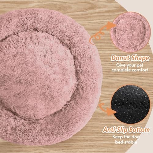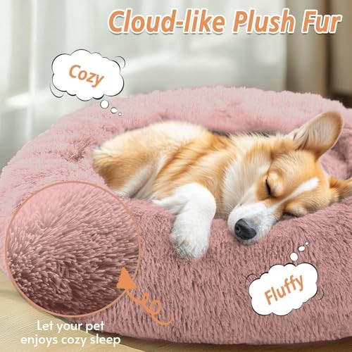 Medium Anti-Anxiety Donut Dog Bed 27 Inches Fluffy Faux Fur Round Pet Bed Dark Pink Medium Anti-Anxiety Donut Dog Bed 27 Inches Fluffy Faux Fur Round Pet Bed Dark Pink Ultra-soft fluffy faux fur creates a cozy sanctuary for medium to large dogs. Donut design with raised rim supports head and neck, ideal for anxious pets. Encourages deeper, restorative sleep with a 360-degree protective barrier. Non-toxic, skin-friendly materials with a sturdy, non-slip base for safety. Machine washable for easy care, designed in neutral hues to match any decor. Available in multiple sizes to accommodate pets up to 75 lbs, with sizing recommendations based on weight and sleeping style.