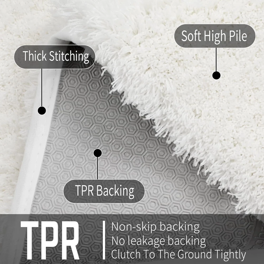 This U-shaped bath rug is incredibly soft and plush—it feels like stepping on a cloud! The microfiber stays fluffy even after multiple washes, with no clumping or tangling. The non-slip backing keeps it securely in place, and the off-white shade adds a clean, elegant look to any bathroom. Perfect for both comfort and durability!