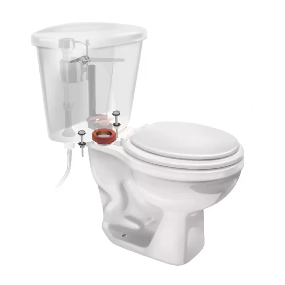 Quickly eliminate leaks and rocking Universal fit for seemless compatibility with most toilets Toilet repair parts that are made to last The Fluidmaster 6102 Universal Tank-To-Bowl Gasket and Hardware offers the best in toilet gasket replacement, featuring everything needed to ensure your toilet is sealed and secure, the gasket is built from high quality sponge rubber to both fit and seal for a long time, while the bolts are made of stainless steel to resist corrosion and last, this universal tank to bowl repair kit is designed to fit most toilets, while offering fast and easy installation. Eliminate a rocking toilet tank and seal a common leak point. For proven protection trust Fluidmaster's 6102 Toilet Gasket and Hardware. Not for use in Gerber and Kohler toilets. Tank-to-bowl gasket and hardware kit offers all you need to seal and secure your tank to bowl Easy to install, for use with 2 in. flush valve toilets Universal fit for close-coupled toilets with round or hex shaped flush valve nuts Durable build from high quality sponge rubber for a long lifespan Stainless steel bolts to resist rust and corrosion (5/16 in. x 2-3/4 in. L)