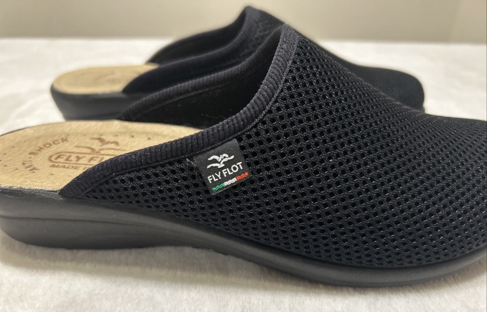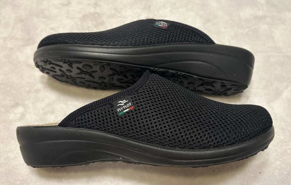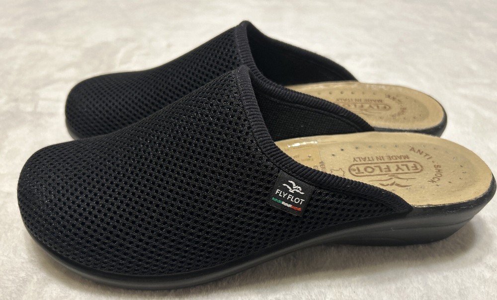Fly Flot Anatomic 8/ 39 Black Mesh Mule Clog Shoes Slip On Comfort Wedge Italy