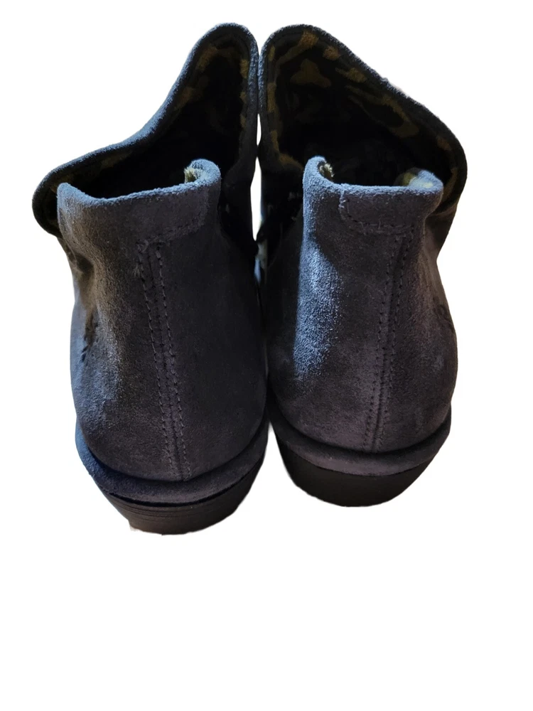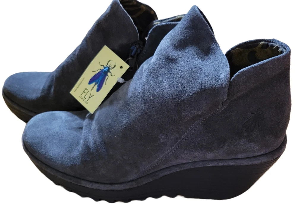 The box is torn. Elevate your shoe game with these stylish Fly London Yip Suede Diesel Wedge heels. The slip-on design with a round toe shape and solid pattern make them perfect for any season, whether it's winter, summer, fall, or spring. Made of high-quality leather and suede, these heels are both durable and comfortable. The gray color and platform style give them a unique look that will make you stand out from the crowd. Perfect for any occasion, these heels are a must-have for any fashion-forward woman. Get your hands on these Fly London Yip Suede Diesel Wedge heels today and step up your style game!