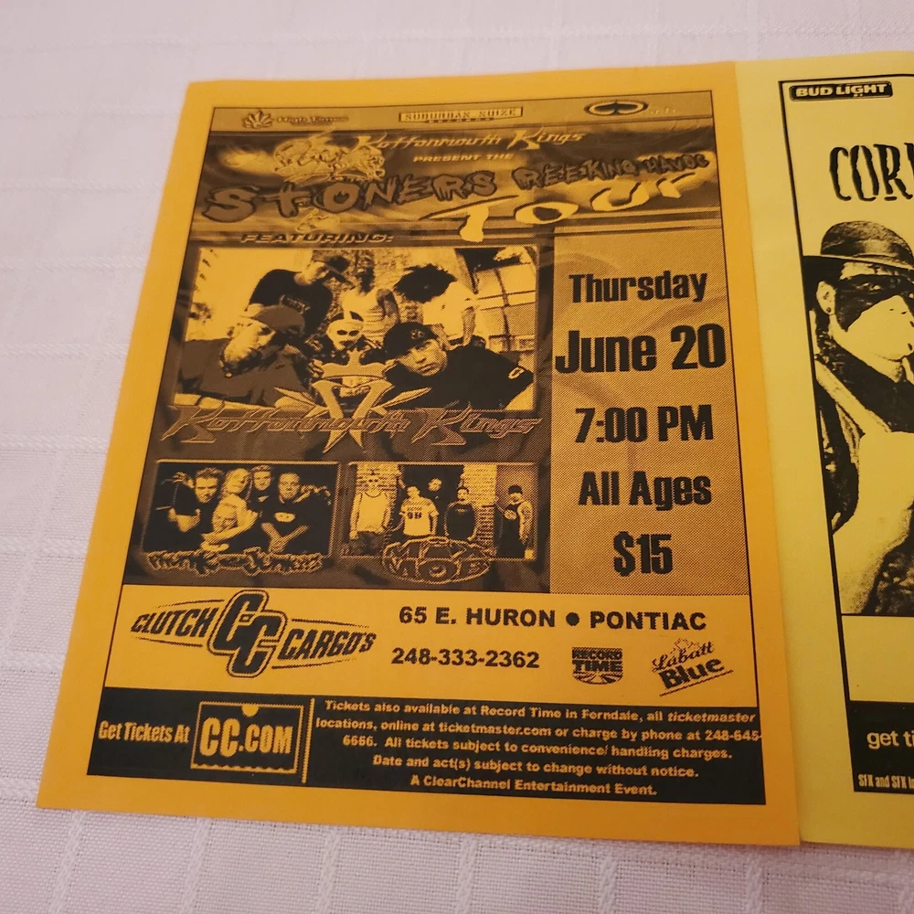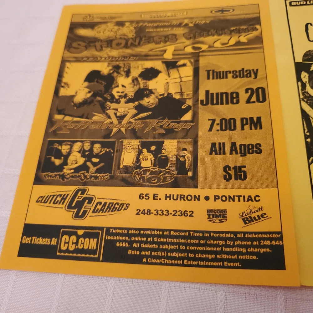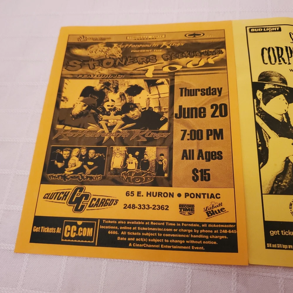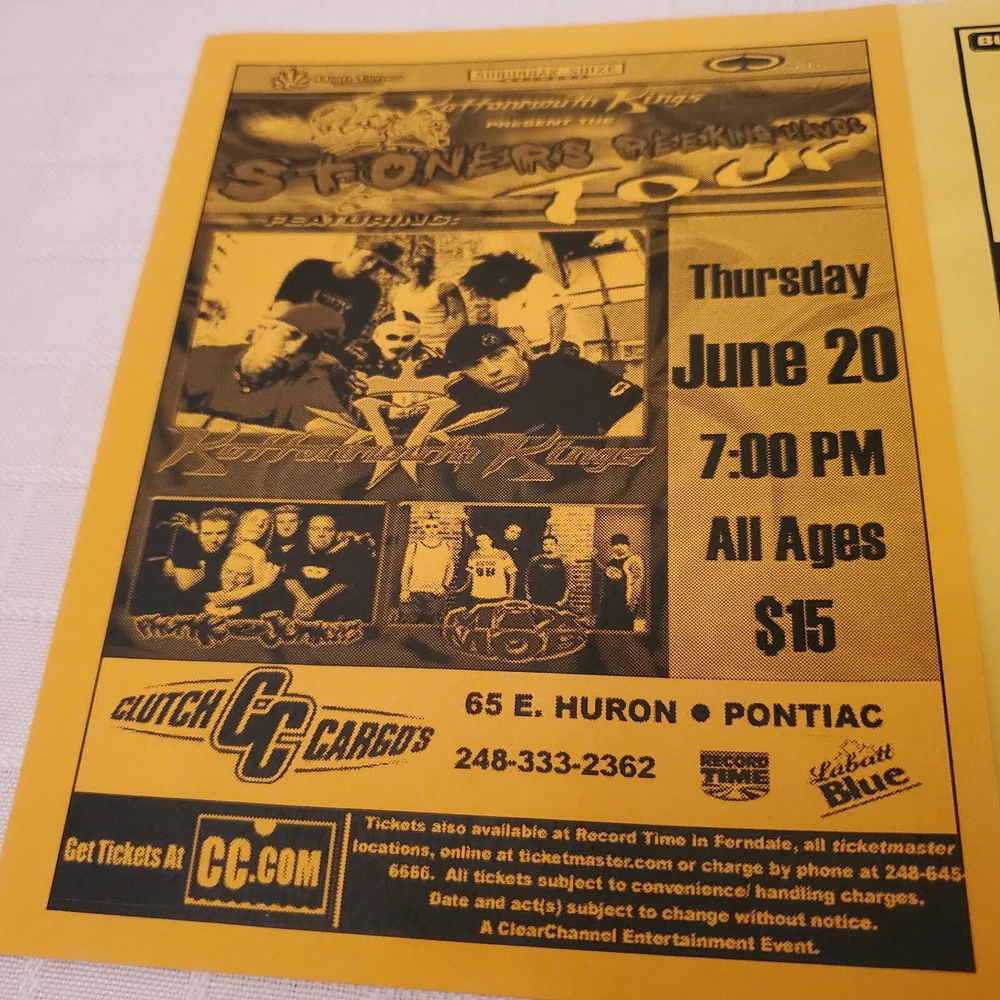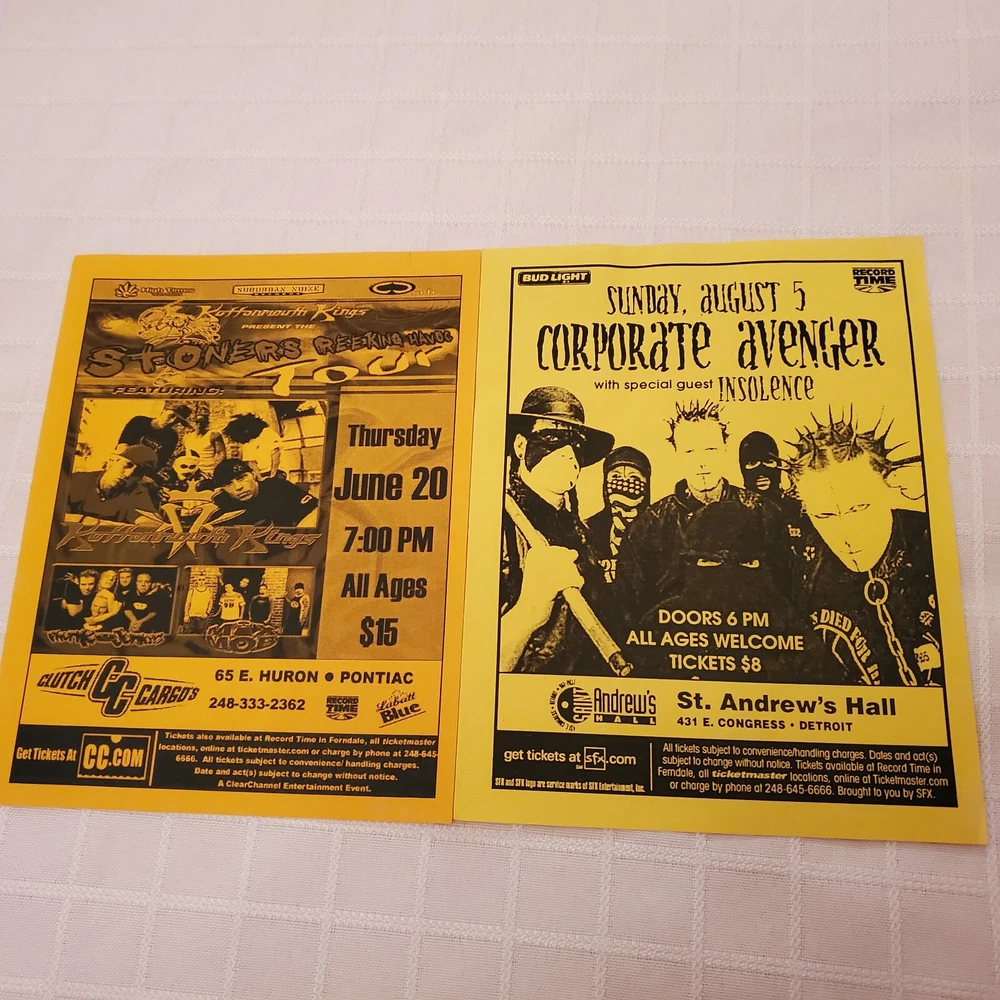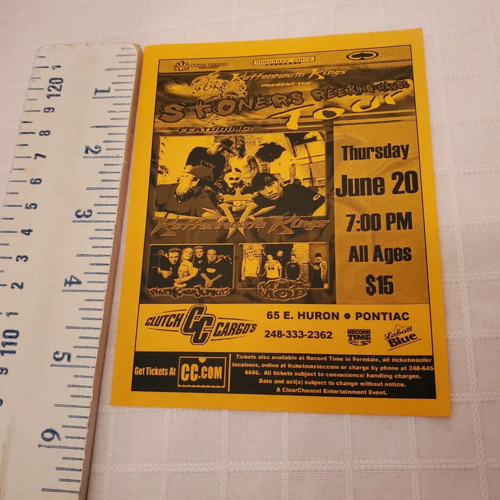 MAILS FAST AND SAFE. All shown included! In good used vintage original shape. No bad flaws. See photos. Ruler shown for measurements. This is a vintage concert flyer lot featuring a lineup of talented musicians including Kottonmouth Kings, Phunk Junkeez, Mix Mob and more at Clutch Cargos and St Andrews Hall. Detroit and Pontiac. The flyers were produced in the US promoting shows in Michigan. United States. The artist/band featured on the flyer is KMK a popular rock and pop group. The flyers are a original piece of entertainment memorabilia that would be a great addition to any collection. It offers a glimpse into the music scene of the past and celebrates the talent of these iconic performers. Don't miss your chance to own this unique piece of rock and pop history.