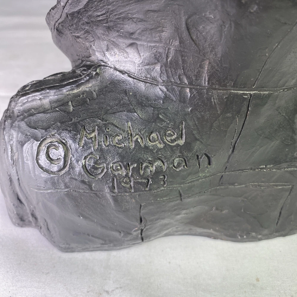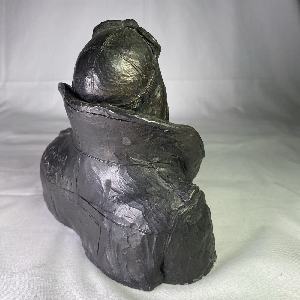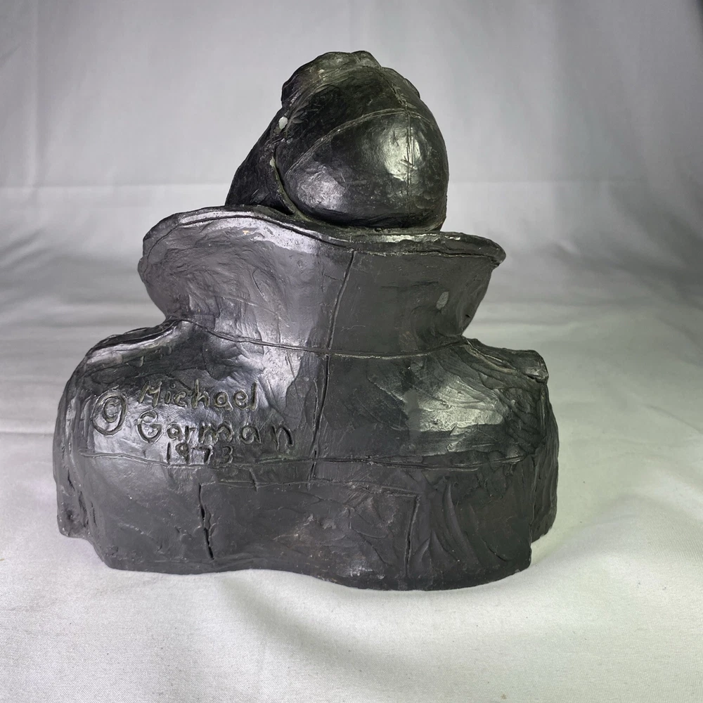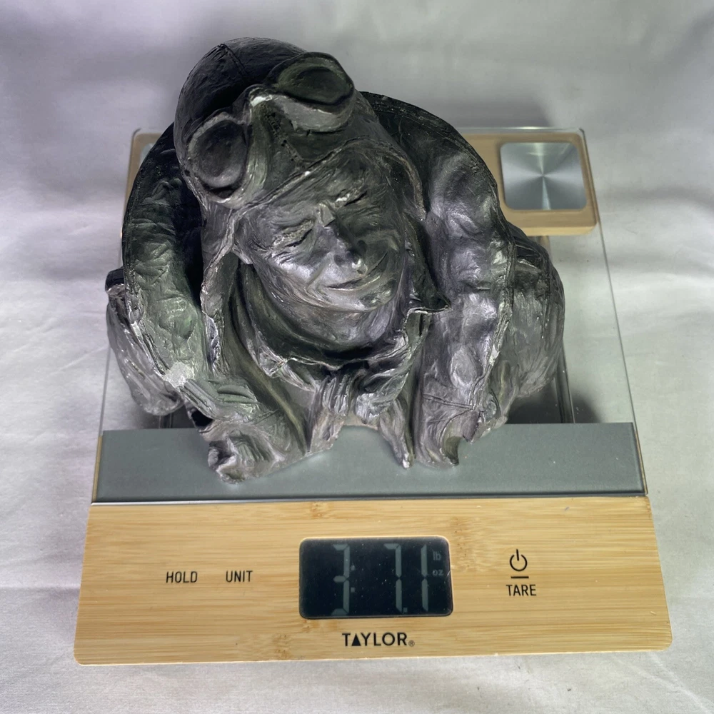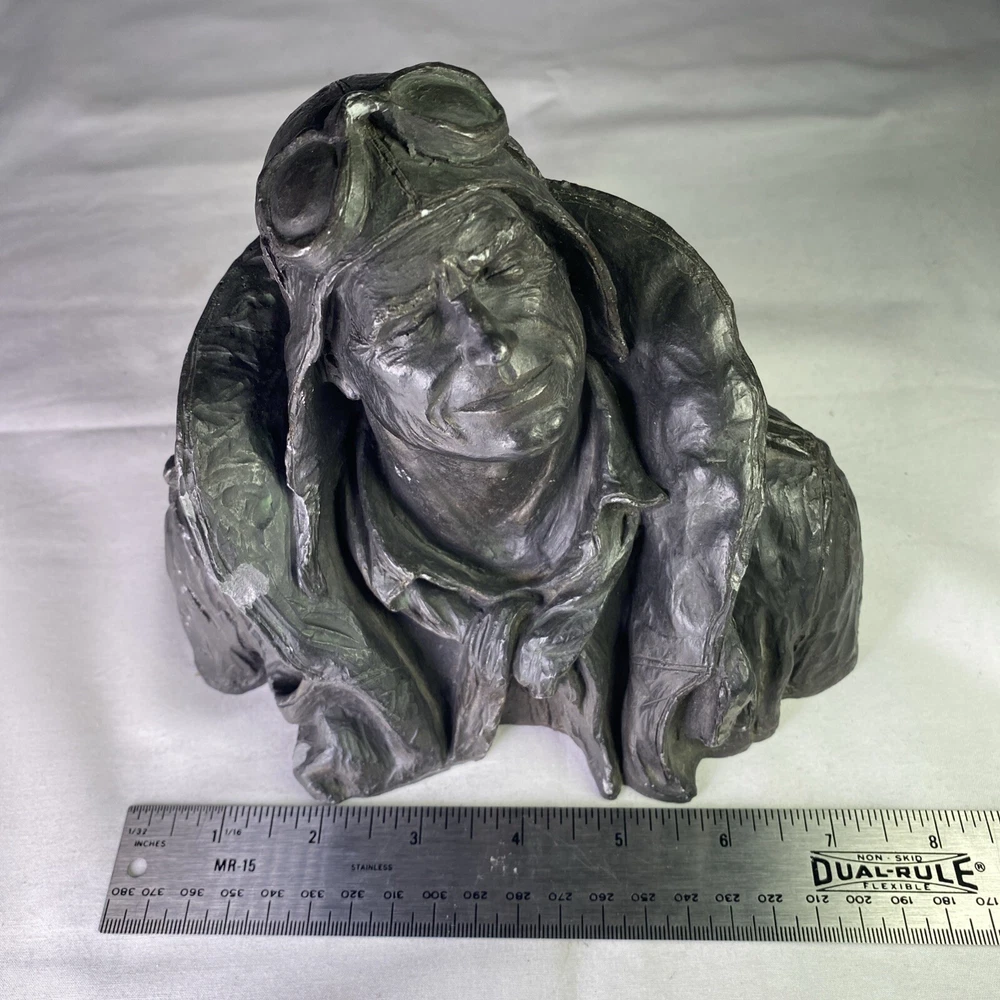 Material:ResinItem Height:6 inArtist:Michael GarmanTitle:Flying LeatherUPC:Does not applyOriginal/Licensed Reproduction:OriginalCountry/Region of Manufacture:United StatesSubject:FiguresPeriod:Contemporary (1970 - 2020)Culture:MilitarySigned:YesItem Width:8”Time Period Produced:1970-1979Style:Pop Art, Realism, SteampunkFormat:Bustgtin13:Does not applyType:SculptureSize:MediumTheme:AviationYear of Production:1973