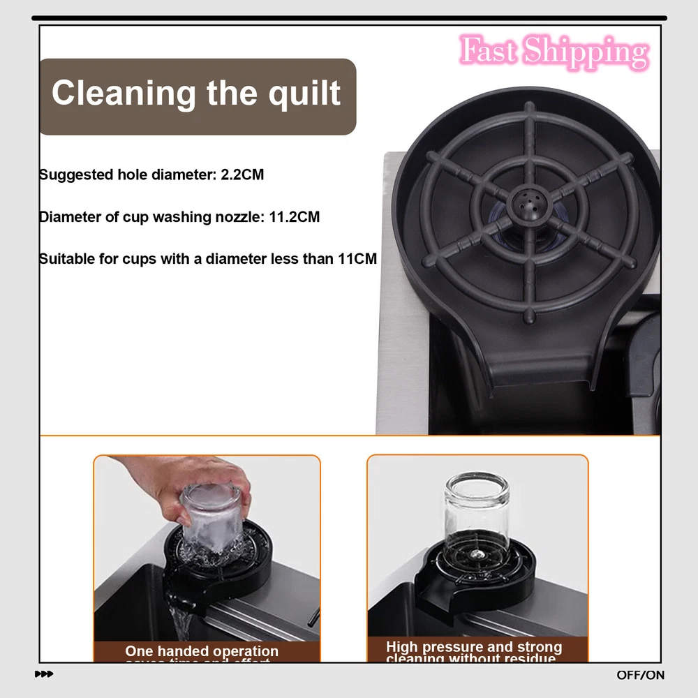 About this item: 【Dual-Track Design of Our Sink】 The dual-track design of this sink helps you achieve efficient cooking. You can defrost food and wash vegetables at the same time. You can also chop vegetables and drain them at the same time. 【 High-Pressure Cup Rinser 】 You can pour some detergent into the cup, place the cup upside down in the cup washer position, and finally, you just need to apply a little pressure. It will spray water to clean the cup. 【 1+3 Pull-Out Faucet 】 You can pour some detergent into the cup, place the cup upside down in the cup washer position, and finally, you just need to apply a little pressure. It will spray water to clean the cup. 【 Drain Button】 By turning this button, you can keep your hands dry and achieve easy drainage. Features: Color: Gunmetal Black Material: Stainless Steel Installation Method: Drop in Flow Rate (GPM): 1.5 Thickness: 16 Gauge stainless steel Product Weights & Dimensions: Overall Dimension: 29.5" L X 17.71" W X 8.27" D Overall Product Weight: 22.05 lbs Note Tips: No instruction including, we can send you the installation video if you need.