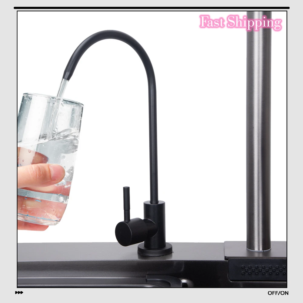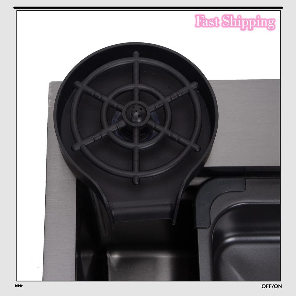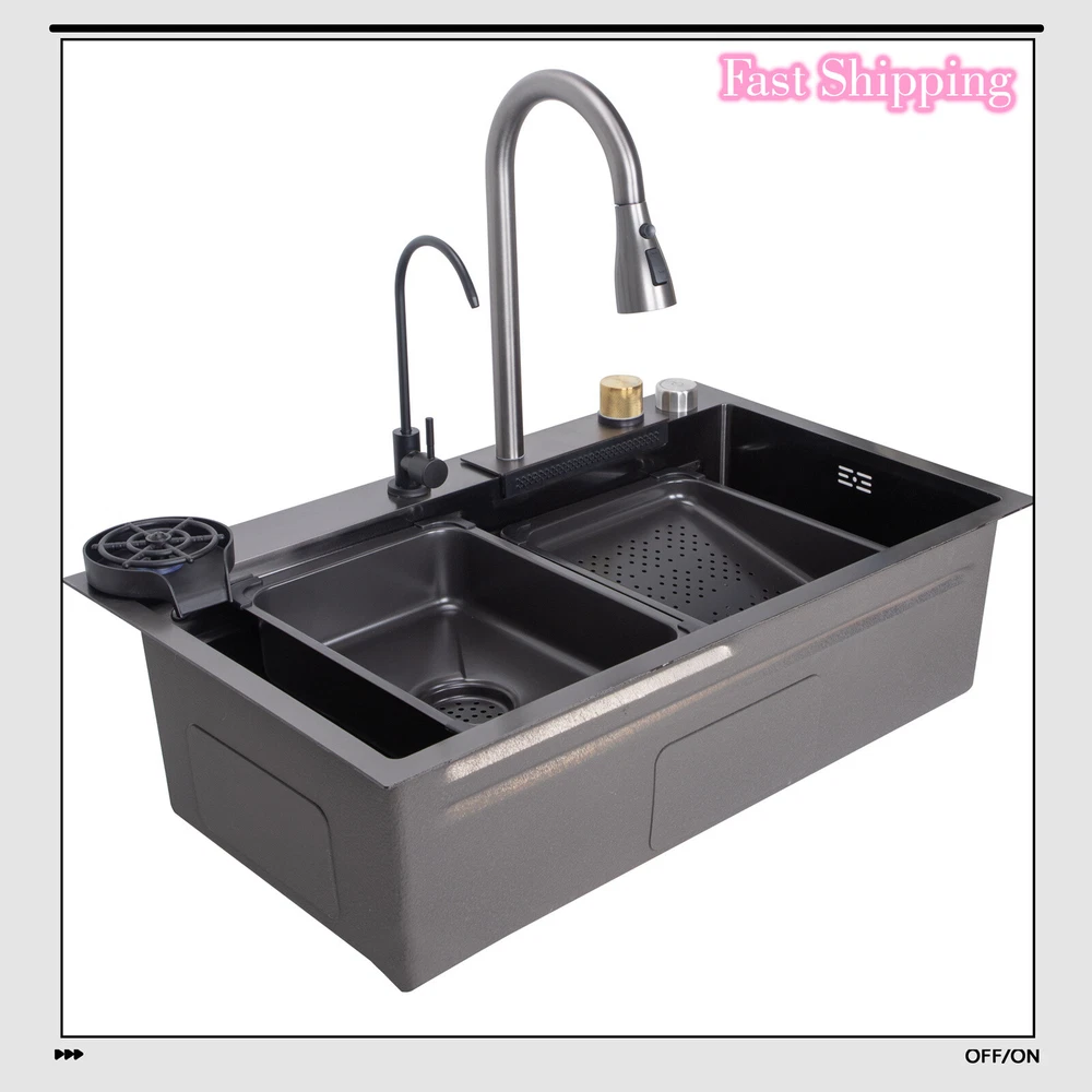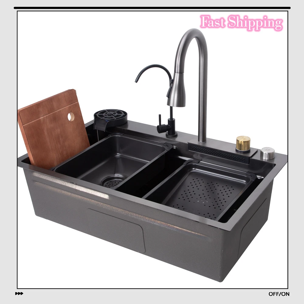Flying Rain Stainles Steel Waterfall Kitchen Sink with Pull Down Faucet Black US