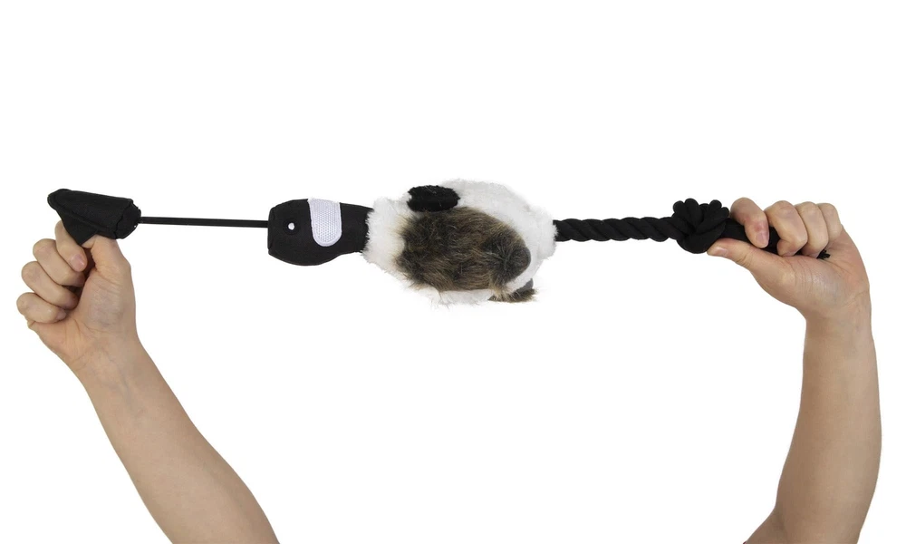 The Flying Goose is a great training and retrieval toy for your dog. It is also great for exercising your dog. SLINGSHOT DOG TOY: Thumb released, high flying, bungee style slingshot dog toy that launches up to 10 feet. FLOATS: Floats in the water, so it's great for the beach, lake, or pool. INTERACTIVE PLAY: Intended for interactive and fetch play, not a chew toy. As with any dog toy, always supervise your pet while playing. MATERIAL: Made of lightweight, durable ballistic material. Brightly colored so you can maintain visibility. AVAILABLE IN SEVERAL DESIGNS: Available in four fun animal designs, colors and sizes so you can choose the that’s best for your pet.