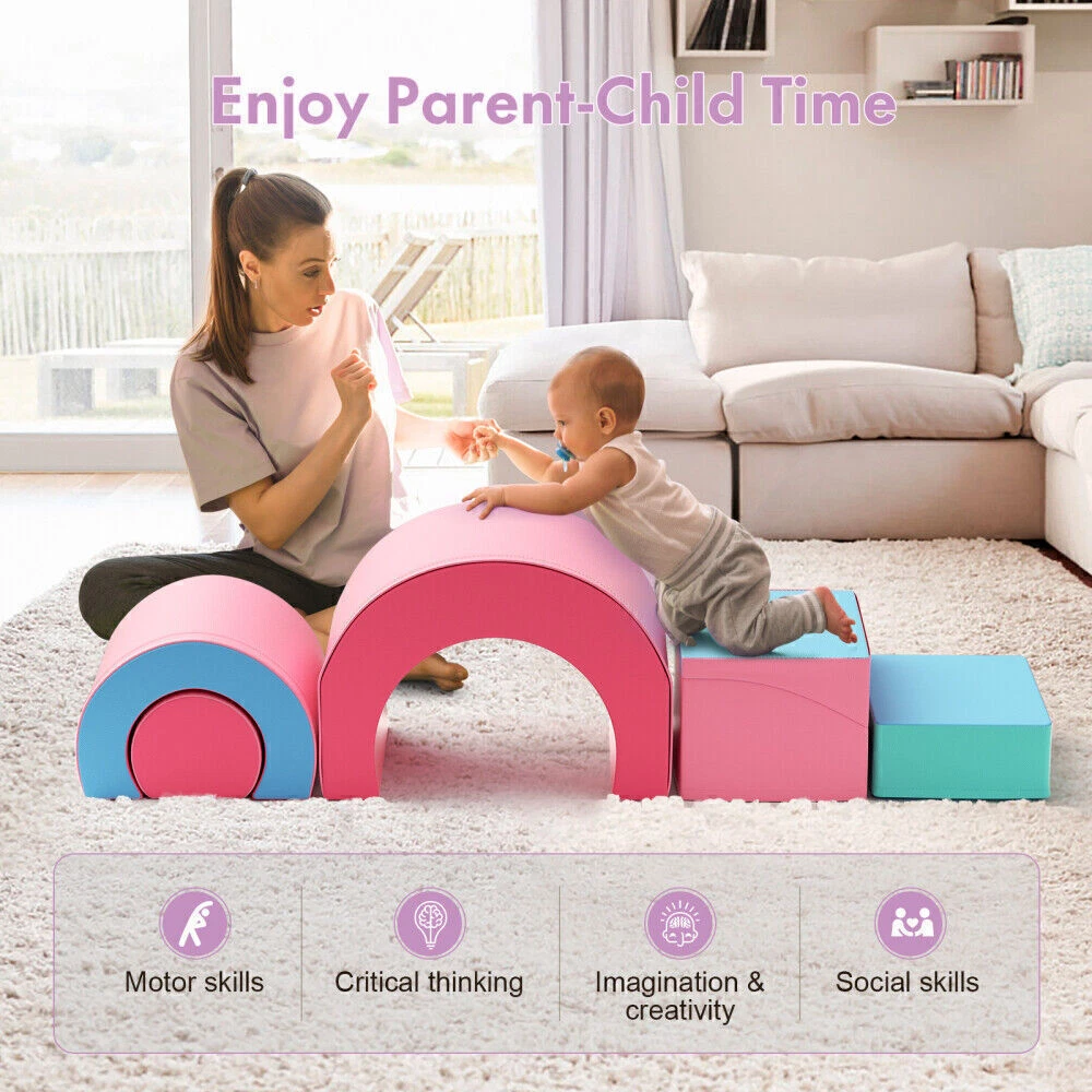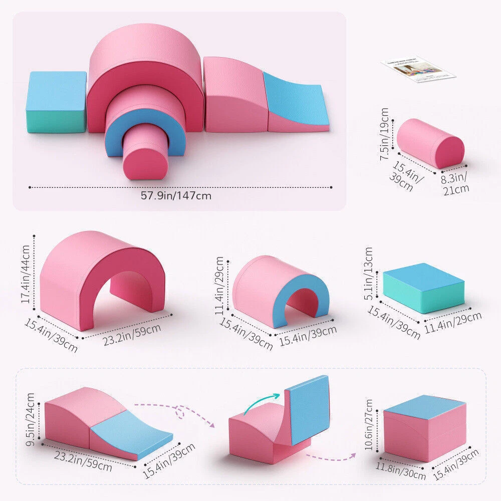Foam Climbing Blocks Soft Climbing Indoor Set for Toddlers and Preschoolers 5Pcs Foam Climbing Blocks, Soft Climbing Toys for Toddlers, 5 Pieces Crawl and Climb Foam Playset with Foldable Block and Tunnel, Indoor Climber Activity Play Set for Kids Age 1+(Pink Blue) About This Item 🎀【Cute Snail-Shaped Foam Blocks 5 Pieces & Tips】 : This block playset adopts a snail-shaped design as a whole, which is very cute! The foam climbing blocks consist of 1 piece of cuboid, 1 piece of cylinder, 2 pieces of arch blocks and 1 piece of foldable wedge block. We recommend for 1 + years old kids and preschool children. Please check the product size in the picture in detail before purchase. 🎀【Foldable Slide & Happy to Play】 : The unique design of foldable slide blocks will make your children have more fun! This toddler climbing toy is designed to enhance baby's cognitive skills while having fun. Children can climb, crawl and roll on the blocks to develop motor and adventure skills.Bright colors can stimulate children's interest in playing. 🎀【DIY Crawl And Climb Playset】 : The foam climbing blocks playset come with 5 different shaped blocks, so toddlers can create their own crawling paths. We believe it can develop children's creativity and problem-solving skills. At the same time, it can bring an interesting and challenging game experience to children. 🎀【Safety & Comfort】 : The block climbing toy set is made of high-density pearl cotton to ensure its durability and deformation. It uses a thickened PU leather case, which is waterproof and crack-proof, skin-friendly and non-slip. It can add a layer of protection and comfort for the baby. 🎀【Easy to Assemble & Clean】 : Each block has zippers and sticky connecting straps for easy cleaning and assembly. The foam climbing blocks can be stably connected at the bottom, which is convenient for you to disassemble and store. The blocks are also easy to clean with mild soap and water, and the surface can be wiped clean without leaving marks. Children can use their imagination, make free combinations, and experience a new combination of fun. Description: 5-Piece Children's Building Block Set The foam climbing blocks for toddlers with 1 rectangular, 1 cylindrical, 1 wedge-shape, 2 arch-shape setsfor babies to climb, crawl and tumble or build the items they want. Macaron blue & pink attracts your child’s attention to being immersed in building blocks for a long time. Designed to develop kids’ motor skills & cognitive abilities and stimulate creativity, the baby climbing toys indoor are ideal choices to integrate play and learning. Fun and educational building block set - Moderate size, no choking hazard - Composed of high-density pearl cotton, durable and non-deforming - Use mild soap and water to clean - Hook and loop tape, easy to combine and disassemble - Maintain baby's freshness with the blocks - Less screen time and more hands-on time Payment policy We accept PayPal . We ship item to your verified address. Payment must be received within 3 days from the date of purchase. Shipping policy Shipping will always be Fast & Free. Whereas any payment upon the item was made, your item will be very well packed and sent within 1 to 3 business days (It's usually 1, and we put 3 just in case) , and it should be safely delivered within 2 to 5 business days. During these days, no worry shall be concerned, so please sit back and wait for your package along the delightful sunshine and peaceful moonlight. To be explicit, your item will be shipped either via USPS or FedEx depending on different circumstances. Your carrier tracking number will be immediately sent to the e-mail address associated with your eBay account as label generated. You may keep track of your order at will. If any question or problem is raised during transition, please let us know and we will help till the end. Terms of Sale Sometimes things can go wrong no matter what. As a responsible seller, we help in any problem, such as damaged goods, defective products, unclear descriptions, or etc., that you consider as a dissatisfaction, the door to our Customer Service is always widely opened for you. Please let us know how we can help if you needed ANYTHING ANYTIME! Yet please also notice that any collaboration needs time to reach a solution. * For a delayed or lost package, as we actively communicate with our colleagues and shipping carriers. This process could take up to 14 days, so if the item is needed urgently, we highly recommend you to place another order. * For a presumably defective product received, our customer service will work this out with you in a quick manner. In this case, please describe the issue as clear as possible. Pictures and videos can be extremely helpful and time-saving here. * For any confusing or false description in the listing that causes a mis-purchase, please kindly remind us so we can improve our listings and continuously offer a better purchasing experience to you and to all our customers as well. Did it occur to be our mistake for the faulty transaction, we would be responsible for the return cost. Among all sorts of the problem, before the puzzle resolved or time expired, a refund or replacement will NOT be issued. We wish you understand the pressures here, and our effort will always come to your aid. About US It's nothing about us. It's all about you. As informed above, the door to our Customer Service is constantly wide-open to you. If you were having any question, or just looking for someone to chat with, please feel free to contact us through Messages. We will get in touch promptly in 24 hours. Concerns wouldn't be necessary since we promised to be on your side. You can just enjoy a nice day while waiting for our reply. When there was an accident like business getting busy or filing bankruptcy or people taking a break or getting off work or getting fired or attacked by aliens or something else which delays our response, might us be forgiven