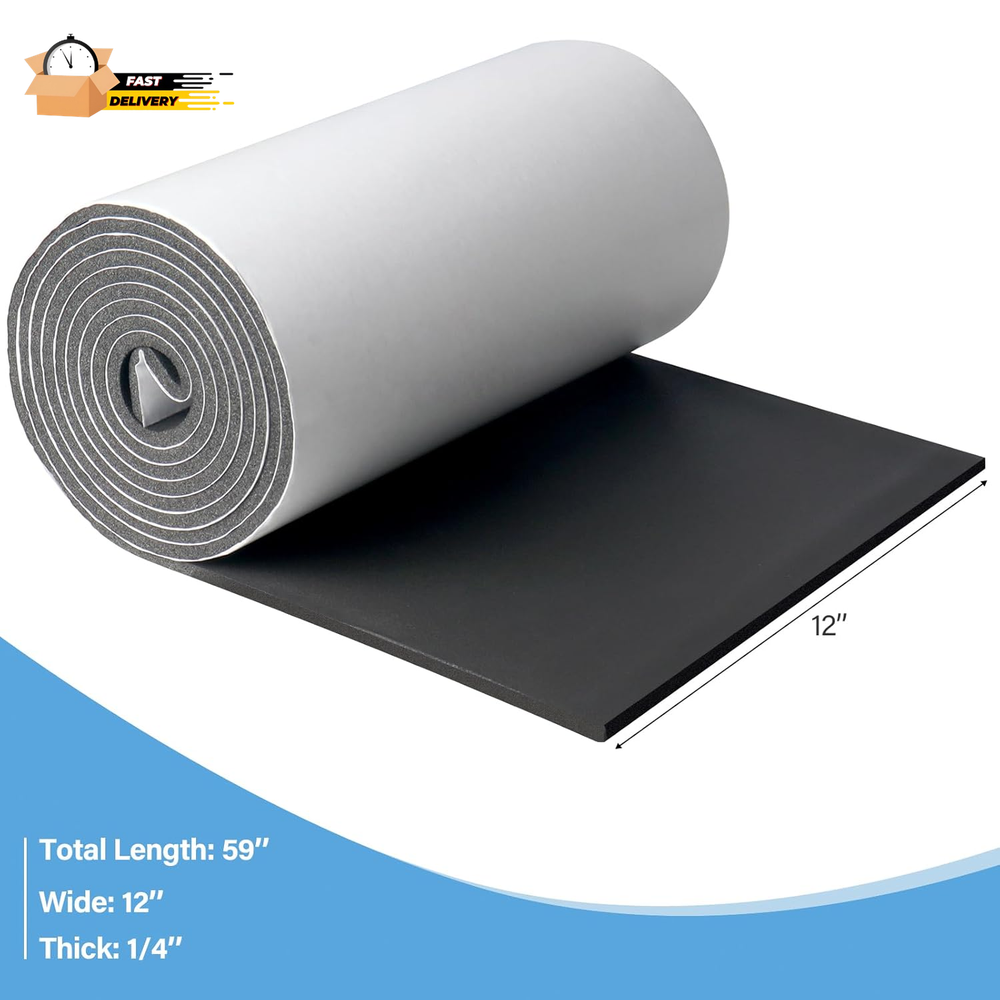 1. This foam insulation sheet is a game-changer! The adhesive backing makes installation super easy, and the neoprene material provides excellent soundproofing and insulation. I love how versatile it is—perfect for sealing gaps, dampening noise, or protecting surfaces. The thickness is just right, and the large size covers plenty of area. Stays in place without warping or losing shape. Highly recommend for DIY projects or home improvements!