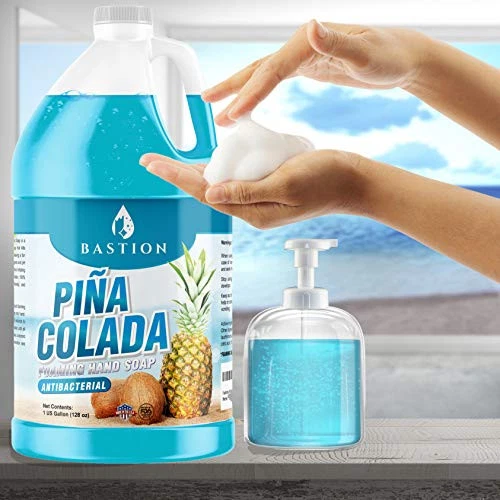 🍍🥥 TROPICAL PINA COLADA SCENTED - Indulge your senses with the blissful scent of pina colada. Get the tropical island vacation without leaving home; all that’s missing is a tiny umbrella. Infused with mild pineapple and coconut scents, this soap invigorates your skin without overpowering your senses. You’ll want to drink it, but please don’t. 🍍🥥 MOISTURIZING - Lavish your hands with this moisturizing foaming hand soap that leaves skin touchably soft and smooth. Gentle yet effective, even with the current situation of frequent hand washing, this soap won’t dry out your skin. 🍍🥥 LUXURIOUS LATHER THAT WASHES OFF CLEAN - Indulge in the rich, creamy lather of this hand soap, as it gently washes away dirt and germs. Ideal viscosity allows for a quick lathering that rinses easily, without leaving behind any residue or stickiness. 🍍🥥 SAVE MONEY & REDUCE PLASTIC - Don’t wash your hard earned money down the drain. Luxury at an honest price, this product requires only a minimal amount of soap to achieve a nice, rich lather. Spend your money on soap not plastic; reduce plastic consumption and cut down on landfill waste by refilling existing soap dispensers. 🍍🥥 FAMILY & PET SAFE - Keep yourself and your loved ones safe and healthy. Pina Colada Hand Soap is FREE of parabens, phthalates, triclosan, and formaldehyde. PH balanced, this non-toxic formula is non-irritating, making it ideal for folks with sensitive skin. DISCLAIMER: FOAMING SOAP DISPENSER REQUIRED