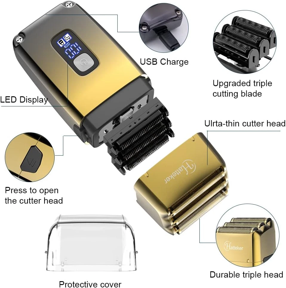 Store New Arrivals Add to Favorite View Feedback Contact Foil Head Shaver Triple Blades Shaver Electric Shaver Razor for Men Close Bald Head Barber Shaver Trimmer Waterproof Wet & Dry, Cordless, Gold Description Item model number RSCW-767 Power Source Battery Powered Product Dimensions 2.52 x 5.2 x 6.85 inches; 15.52 ounces Country of Origin China Batteries 1 Lithium Ion batteries required. (included) Model Name RSCW-767 Recommended Uses For Product Beard, Mustache Special Feature Battery Indicator, Travel Lock, Washable Triple Foil Shaver Head: The triple foil shaver adopts ultra-thin cutter head, and it is made of stainless-steel material, helping minimize painful stings and irritation on your skin, making it cleaner, smoother, and without short stubble, bringing a close and well-groomed shaving experience Upgraded Ergonomic Design : Your head and facial hair grows in at many different angles, so we designed the foils with a multi-directional pattern that captures even the shortest hairs at a variety of angles, increasing the shaving area and saves shaving time Powerful Motor& Battery: Equipped with durable motor, our shaver can provide long-lasting running for you in shaving thick and rough hair. With a built-in rechargeable lithium-ion battery, it takes about 1.5 hours fully charge to allow 75 minutes working time Wet & Dry Shaving: The shaver is washable because it reaching IPX7 level, it’s not only supports dry, but also wet shaving with shaving cream, foam, etc. and it’s easy to clean, just to press hood release button and clean it under water, then put the protective cover to maintain Smart LED Display: The large LED display reminds you of the battery power level, cleaning reminder and travel lock are more intelligent. The travel lock ensures travel safety without worrying about accidental battery consumption Product Description Hatteker Triple Blade Shaver Best for finishing fades and removing stubble Gold titanium gentle cutter for irritation-free shaving Powerful and durable motor Cordless operation Up to 75 minutes shaving after 1.5 hours full charging IPX7 Waterproof/ Wet & Dry Shave 0.02mm Ultra-thin foil head Ultra-thin cutter foil head maximum contact with the skin and fit to the greatest extent to achieve a comfortable shaving feeling. CLOSE SHAVE The shaver adapts to the contours of the face, neck and even the jaw, and provides a smooth and close shave every time, finishing fades ad removing stubble. Bald Head Shaver The Hatteker Pro shaver also is best for maintaining fade and bald hairstyles. FULLY WASHABLE The shaver easily washes clean under the faucet, and the cutting assembly is removable for deeper cleaning. FAST USB CHARGING A fully charging after 1.5 hours could run for 75 mins . It can be used while charging by USB cable and the charging method is various, like phone adapter, portable charger and so on. SMART LED DISPLAY Electricity percentage, Faucet symbol, Lock symbol Please note: Do not push the shaver on the skin too hard as it could cause irritation. It may take few weeks for your skin to adapt to a new shaver. Long beard must be trimmed down by using other hair trimmers before using with any shaver. Package including: Shaver *1 Cleaning brush *1 USB *1 Storage bag *1 ABOUT US We offer the best prices around on high quality products. Our E-store includes media such as books, movies, music and games while offering electronics, toys, sporting apparel, clothing, tools, general home, garden items and more. SHIPPING We are always working hard to ensure your package arrives as soon as possible. Please understand that some factors like weather, high postal traffic, and the performance of shipping companies are outside of our control. We offer free shipping to the lower 48 states and ship within 2 business days of payment, usually sooner. We do not accept P.O. Boxes. Please provide a physical address. For shipping outside of the continental USA, we only use eBay's Global Shipping Program.The item is shipped to KY and then sent to the rest of the world. International customers are responsible for all duties and taxes. Continue to check out in order to calculate costs for shipping the item to your country. Messages regarding eBay's Global Shipping Program MUST be directed at eBay EXCLUSIVELY. RETURNS We offer a 30-Day Return Policy on items which you are not completely satisfied with. You have the option for a full-refund or an exchange of the item. No returns are available on items shipped outside of the USA. PAYMENT We accept PayPal. CONTACT US This page content is yet to come Please ad us to your favorite seller and visit again later Thank You CUSTOMER SATISFACTION We try our very best to make sure every customer is completely satisfied. If there's a problem, message us! We're happy to help. WE ACCEPT Copyright © 2021 AutoDS. | All Rights Reserved