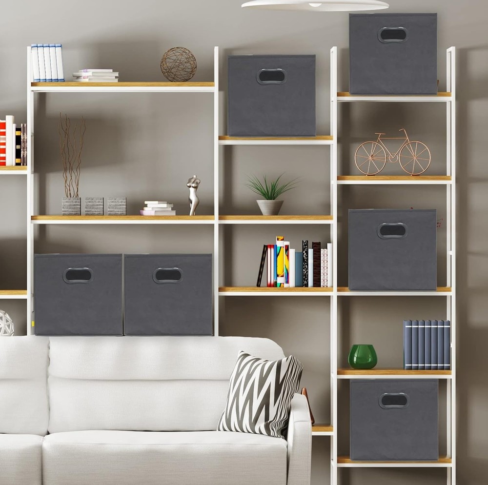 Cube Storage Bins 13×13 Linen Foldable Box with Handles, Silver Gray