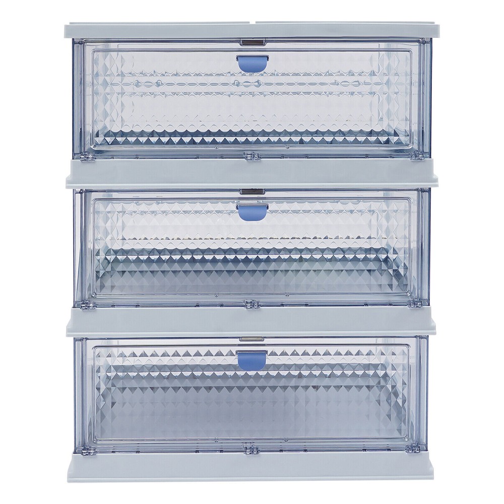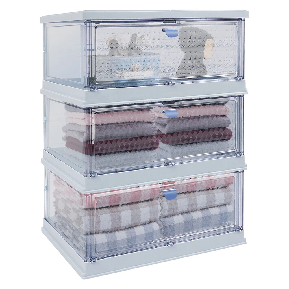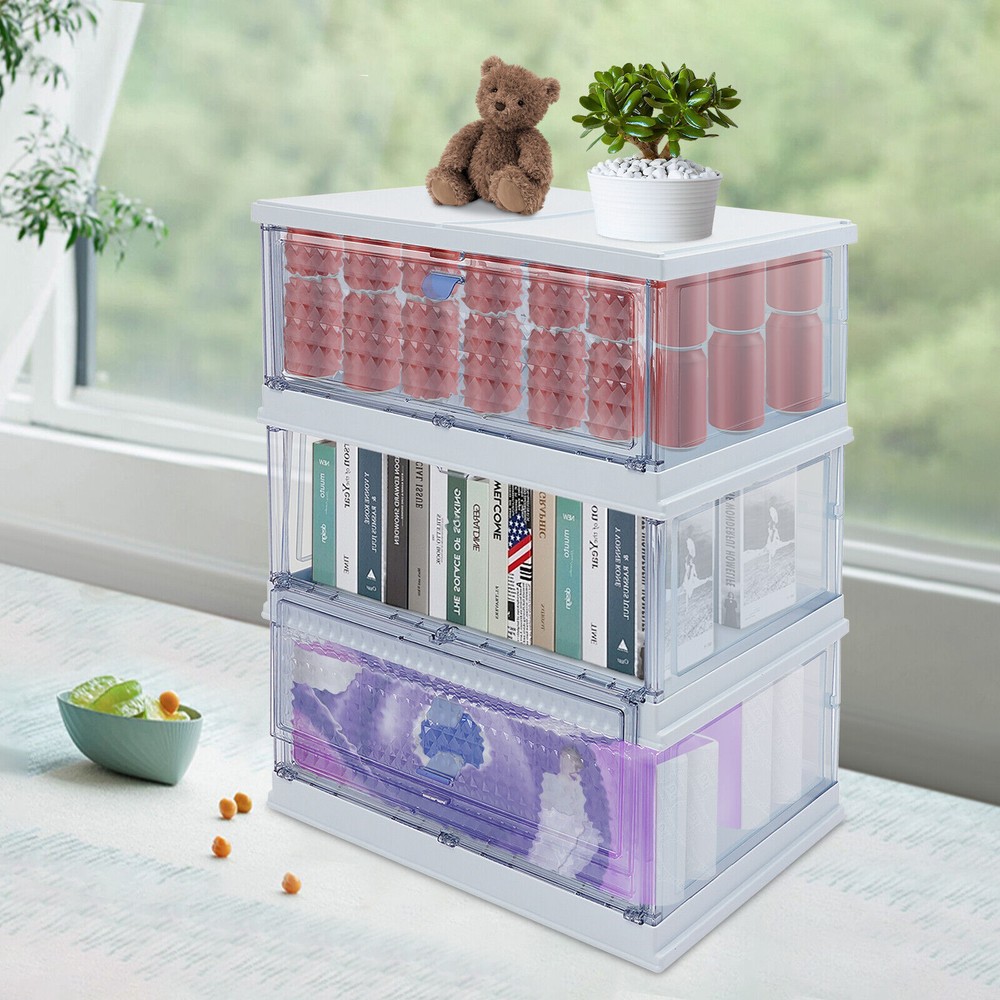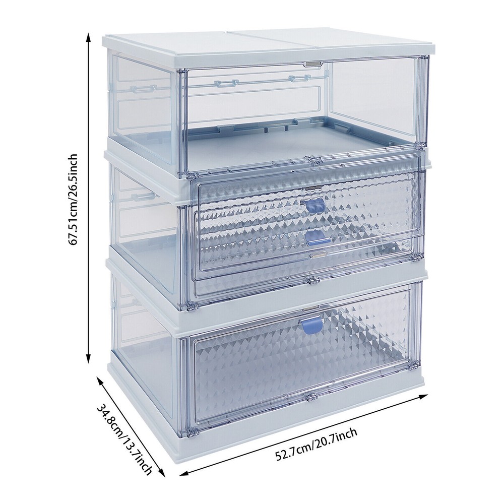 Foldable Storage Cabinet, 3-tier Storage Cabinet, Folding Storage Bins Description Do you still struggle with clutter and lack of storage space in your home? This storage cabinet will keep your room organized with its small footprint and large storage space. The strong weight-bearing capacity allows you to use it with confidence, and the foldable design makes it easy to carry and store . If you want to have a neat space, this product is an indispensable helper for you. Key Features Solid and Durable : This product is made of high-class PP and PS , which is anti-corrosion , anti-rust , environmentally friendly, strong, and durable, ensuring you can use it for a long time. Spacious Storage Space : The 3-tier structure provides you with the convenience of storing different categories of items in separate sections, including shoes, snacks, pet supplies, and toys. In addition, the large top platform is convenient for placing your flower pots, bags, keys, umbrellas, and more. Thoughtful Design: The visual design allows you to see items inside at a glance, making it easier to select, access, and place items. The magnetic cabinet door will not open automatically when moving or stationary and is effective in preventing dust and insects in daily use. The diamond panel allows you to see what is inside in a way that doesn't look messy. Strong Bearing Capacity : High-class material, one-piece frame, and rectangular structure make this product withstand 14.33 lbs in each tier, so you can use it with confidence without worrying about collapsing. Foldable and Portable: You can fold this product into a smaller size for convenient storage when not in use, which will not take up much space. Simple to Use : This product adopts an integrated foldable design with a simple structure without additional assembly. You simply unfold it to start using it, thus saving time and effort. Effortless Clean : The smooth surface and simple structure make the cabinet easy to clean with water and a damp cloth (not included). Ideal Gift : Beautiful appearance and practical function make it an ideal housewarming gift for family and friends so that they can enjoy a more exquisite life. Stylish Appearance : The pleasing blue color, diamond patterns on the doors, and smooth lines make the whole product lovely and modern. Wherever it is placed, it will be beautiful scenery. Application It is suitable for storing shoes, cosmetics, books, towels, snacks, sundries, and more in entrances, kitchens, closets, study rooms, living rooms, cloakrooms, or bedrooms. Details Practical Handles : The handles on each door make it easy to open and close the doors. Smooth Edges : They not only enhance the aesthetics of the product but also improve safety during cleaning and use. Specification Color: Blue Style: Modern Shape: Rectangle Material: PP, PS Process: Injection Molding Mount Type: Floor Standing Each Tier Load-bearing Capacity: 6.5kg/14.33 lbs Number of Tiers: 3 Product Size(Unfolded): 52.7*34.8*67.51cm/20.7*13.7*26.5in Package Size: 59*41.5*15.5cm/23.23*16.34*6.1in Gross Weight: 5.23kg/11.53lbs Net Weight: 4.43kg/9.77lbs Package Included 1* Storage Cabinet Notes Please confirm the product dimensions before purchasing. Please avoid heavy impact, sharp objects, or direct high-temperature exposure during use to avoid product damage or aging. Please note that this product does not include other items shown in the picture. Please allow the slight color difference caused by the shooting light and 1-3cm error due to manual measurement and make sure you do not mind before ordering. Payment Delivery details Terms of sales About us Contact us Payment We accept ebay payment 。 Fees such as import duties, taxes are not included in the item price or shipping costs. These charges are the buyer's responsibility. Delivery details Shipping: 2-9 working days to: USA Terms of sales We maintain high standards of excellence and strive for hundred percent customer satisfaction. Feedback is very important to us. We hope that you contact us immediately before you give neutral or negative feedback, so that we can address your concerns. It is impossible to address issues if we do not know about them! About us Your satis faction is our ultimate goal. We work hard to earn your trust and future business. Our certified technicians have tested each item before shipping. The unit comes with 1 year limited warranty on all manufacturing defects. a) If you receive a defective item, you may return it or ask for a discount. Please contact us within 14 days after you receive the package. b) What you returned must be intact and in its original packaging as re? u. Customer is responsible for shipping costs of the returned item. c) We will cover the cost of shipping back t with the shipping rate indicated in the registration page. We will send you a new unit or refund the full payment you paid. Thank you. Contact us Business Hour Business Hour: Monday To Friday: 8:30 AM to 5:00 PM (Beijing China time) Due to time zones, our reply to your questions may not be immediately. But within above working time, we will reply your email within 24 hours. If it's non-workdays, please kindly be patient and wait till Monday. Please contact us with ebay message. Please feel free to contact us if you have any questions. Monday To Friday: 8:30 AM to 5:00 PM (Beijing China time) Due to time zones, our reply to your questions may not be immediately. But within above working time, we will reply your email within 24 hours. If it's non-workdays, please kindly be patient and wait till Monday. Please contact us with ebay message. Please feel free to contact us if you have any questions. Brand TBvechi Each Tier Load-bearing Capacity 6.5kg/14.33 lbs Number of Tiers: 3 Item Height 15.5CM Item Length 59CM Item Width 41.5CM Type Folding Storage Material PP, PS