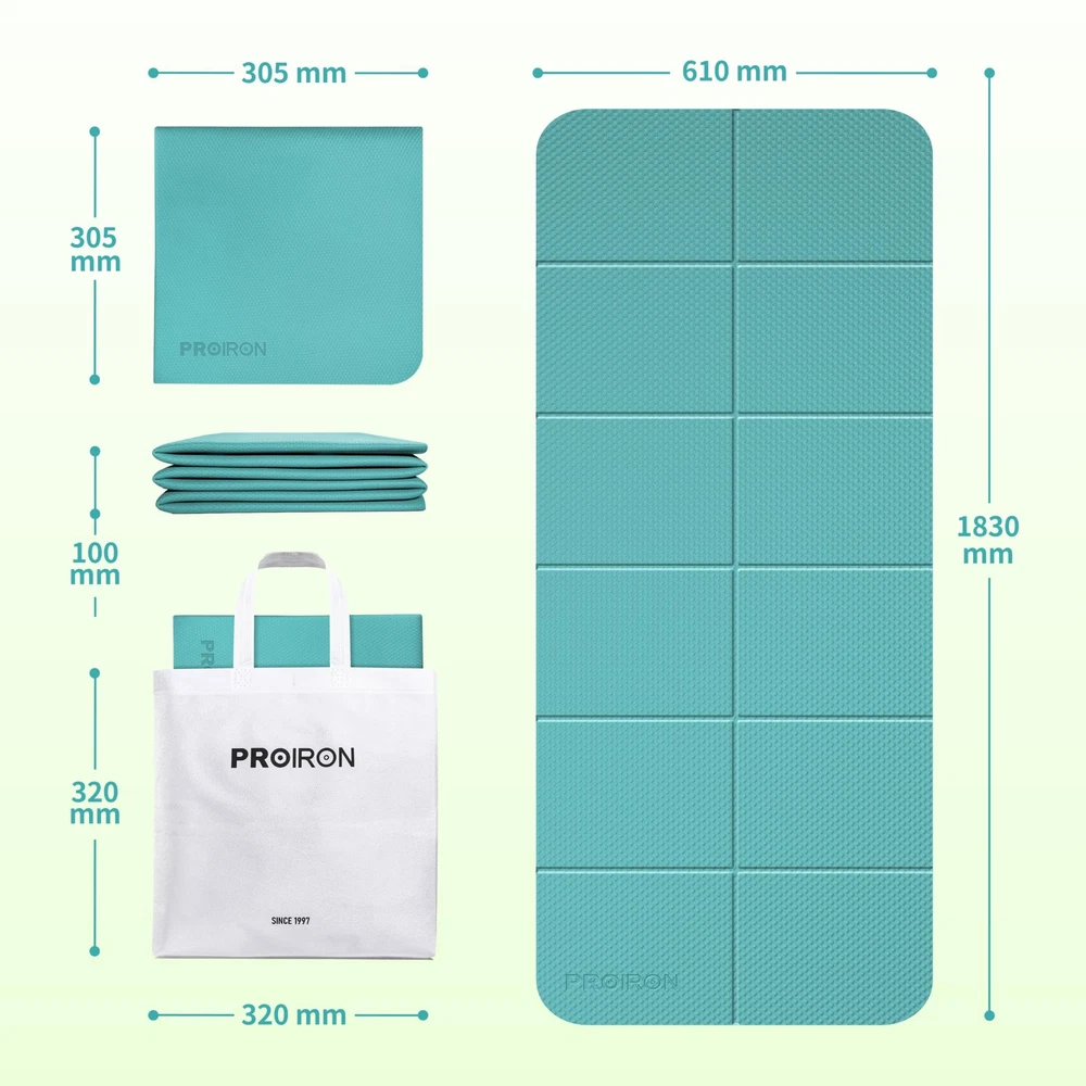 Folding yoga mats are designed for quick and compact storage. Traditionally yoga mats have to be rolled up and tied into a bag, making storage time consuming, the foldable yoga mat achieves quick storage of the mat with better space saving by simply folding it. Foldable yoga mat can easily fit into your suitcase, backpack, handbag or bike frame, it is a travel yoga mat that can be taken anywhere, such as Pilates, yoga class, gym, training and sports games, school or office lunch breaks, trips to parks or beaches, picnic camping and so on, and can be used as a yoga mat, fitness mat, picnic mat, nap mat, travel mat and so on. In addition, the creases on the folding yoga mat allow you to check your posture and whether your body is parallel during yoga or exercise, which is more helpful for core training. 【Foldable Design Easy to Use & Carry】Our foldable yoga mat is designed to be lightweight and compact, can be folded quickly, with a complimentary linen storage bag, easy to store and take anywhere, it is a Portable yoga mat that can be taken anywhere, such as pilates, yoga class, gym, school or office lunch breaks, trips to the park or the beach, picnics and camping, and so on. 【Double-Sided Anti-Slip】Folding yoga mat with double-sided anti-slip design, front diamond pattern, back water wave pattern, double-sided intensive anti-slip texture, providing higher stability and effective stop slip. 【Crease Guide,Corrective Asana】The folded indentation of the folded mat is the centre line of the mat and multiple parallel lines, which can be analogous to asana lines to achieve a guiding function, so that it can help to check postures and body alignment during yoga or workouts. 【Layered Inside and Outside to Keep Out Dirt】The part of the mat that touches the floor when folded for storage does not come into contact with the front of the mat, isolating it from dirt. When traditional mats are rolled up for storage, the bottom of the mat will directly cover the front of the mat, bringing dirt from the floor to the surface of the mat. 【Includes Storage Bag,Portable】Our folding mat comes with a storage bag, easy to carry and store neatly;If you have any questions, please feel free to contact us,We offer you a 180-day customer satisfaction guarantee! At PROIRON, your satisfaction is not an option but a guarantee!