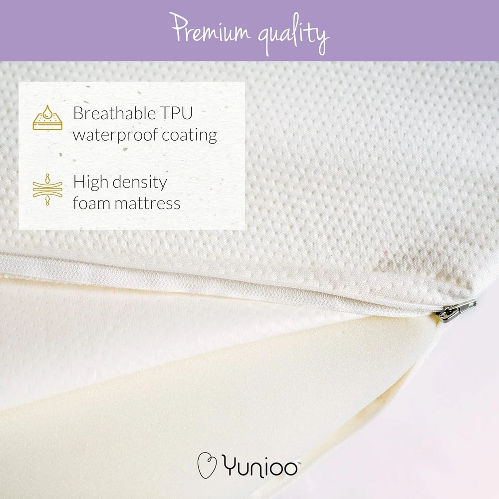 Soft and Cozy - Keep your baby comfortable during diaper changes with 1.2" of premium high-density breathable foam. This foldable baby changing pad is wrapped in an ultra-soft eco-friendly bamboo cover. Safety First - We spare no details to ensure that our changing basket mattress is safe for your baby. Our replacement changing pad meets strict CPSC safety requirements. It is not intended for sleeping. Water Repellent Protection - Say hello to a clean changing surface every time. Our changing table topper for dresser has a soft zipper removable cover with a water repellent TPU coating on the inside to protect against unpleasant surprises. Sized Just Right - Our thick oval foam mattress measures 29 x 15 inch and fits almost any baby changing station, baby changing basket, moses basket or bassinet. Please check your dimensions before ordering to confirm you have the correct size. Give Back - We donate a portion of profits to charity, so you can feel good about your purchase. We donate to ICFON, which helps Nepalese families in need escape extreme poverty.