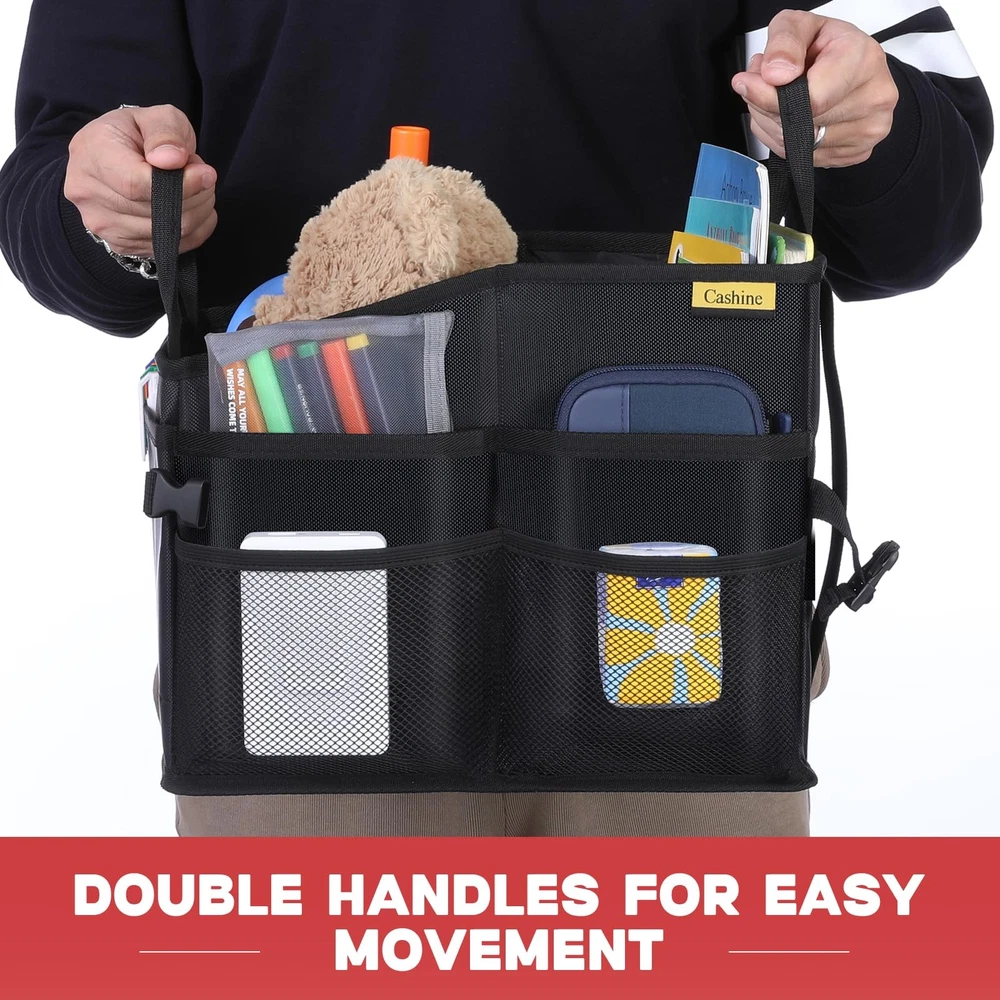 Car seat organizer is very suitable for putting work folders, magazines, books, mobile phones, water bottles, car supplies and children's car travel supplies in order and at your fingertips. The car organizer for kids and adults is made of high-quality 1680D Oxford cloth material and has the characteristics as follows: -Two additional detachable partitions can help you freely distribute the storage area, which is suitable for all sizes of articles. -There are 4 pockets on the side, so that you can make full use of the storage space, so that the ready-to-use items can be clearly seen and at your fingertips. -Convenient folding design, which is convenient for storage and does not occupy space when not in use. -It can be used in: front passenger seat, any position in rear seat, any position on car floor, any position in trunk, office and home. Product parameters: Product size: 11.8*10.2*10.2 inch The package includes: 1* Car seat storage organizer 2* Detachable partition plates 1* Bottom support plate. MULTI-PURPOSE CAR STORAGE ORGANIZER - The front seat organizer can be installed at any position in the passenger seat, rear seat and trunk of the car, and used to store sundries, books, documents, car plot supplies, children's toys, drawing boards, etc. Let the things you need in your car be easily found, and keep the car environment comfortable and tidy at all times. The car organizer between seats can be easily folded for convenient storage when not in use. FINE WORKMANSHIP AND SOLID FRAME - The car seat organizer is made of 1680D high-density Oxford cloth. The fabric is stain-resistant and easy to clean, and can be wiped with a wet towel. The high-strength support plate makes the car organizer stronger and not easy to deform. MORE STORAGE SPACE, MORE STORAGE WAYS - There are two detachable partition boards inside the front seat car organizer, which can freely install and distribute storage space according to storage needs. There are four storage pockets on the left and right sides, and the expanded width of 2cm is added at the bottom of the big pocket. When you store items in the side pockets, this design can prevent the two sides of the car storage organizer from concave deformation.. ANTI-FALLING INSTALLATION DESIGN - When you install the car seat organizer at any position on the car seat, you can use the seat belt to fix the storage box with the seat, so you don't have to worry that the storage box will move or fall to the floor during driving. YOUR SATISFACTION IS OUR GOAL - 's aim is to professionally manufacture exquisite and high-quality car storage products. We strive to ensure that you have a completely satisfactory experience. If you have any doubt and are not completely satisfied with your order, we will unconditionally replace your order or give you a 100% refund.
