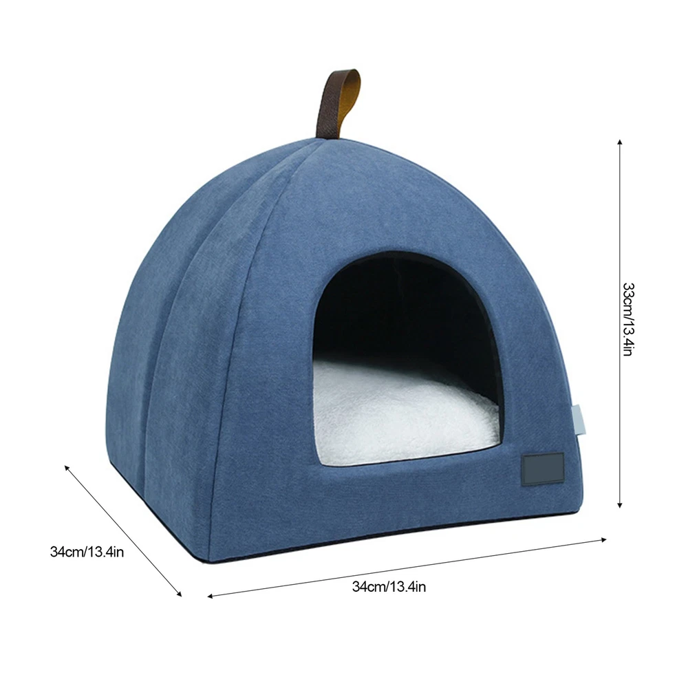 Feature: 1. Our dog bed tent features a non-slip bottom, ensuring that the house stays in place and can be placed on any tiled or hardwood floor without worry. 2. Our dog tent bed is suitable for cats and dogs, providing a comfortable and secure space for your furry friend. 3. Our Puppy Tent Bed is foldable, removable, and washable, making it easy to carry and perfect for travel. 4. Perfect Gift: Our cat house is the perfect gift for any pet lover. Specification: Our pet bed tent is made with high-quality soft material to create a warm and cozy home for your furry friend. Each house comes with a soft and warm thick cushion, providing your pet with a comfortable and loving environment. Features: Our dog bed tent features a non-slip bottom, ensuring that the house stays in place and can be placed on any tiled or hardwood floor without worry. Our Puppy Tent Bed is foldable, removable, and washable, making it easy to carry and perfect for travel. Our dog tent bed is suitable for cats and dogs, providing a comfortable and secure space for your furry friend. Perfect Gift: Our cat house is the perfect gift for any pet lover. Versatile 2-in-1 Design: Use it as an enclosed cave bed, or fold down the top to create a comfortable pet mat for lounging cats. Specifications: Material: PP cotton,Oxford cloth. Color: Blue/ grey (optional). Size: 34*34*33cm / 13.4*13.4*13in Package size: 39*36*3cm / 15.4*14.2*1.2in Package weight: 450g/ 15.9oz. Package list: 1 * Cat Bed Package List: 1 * Cat Bed