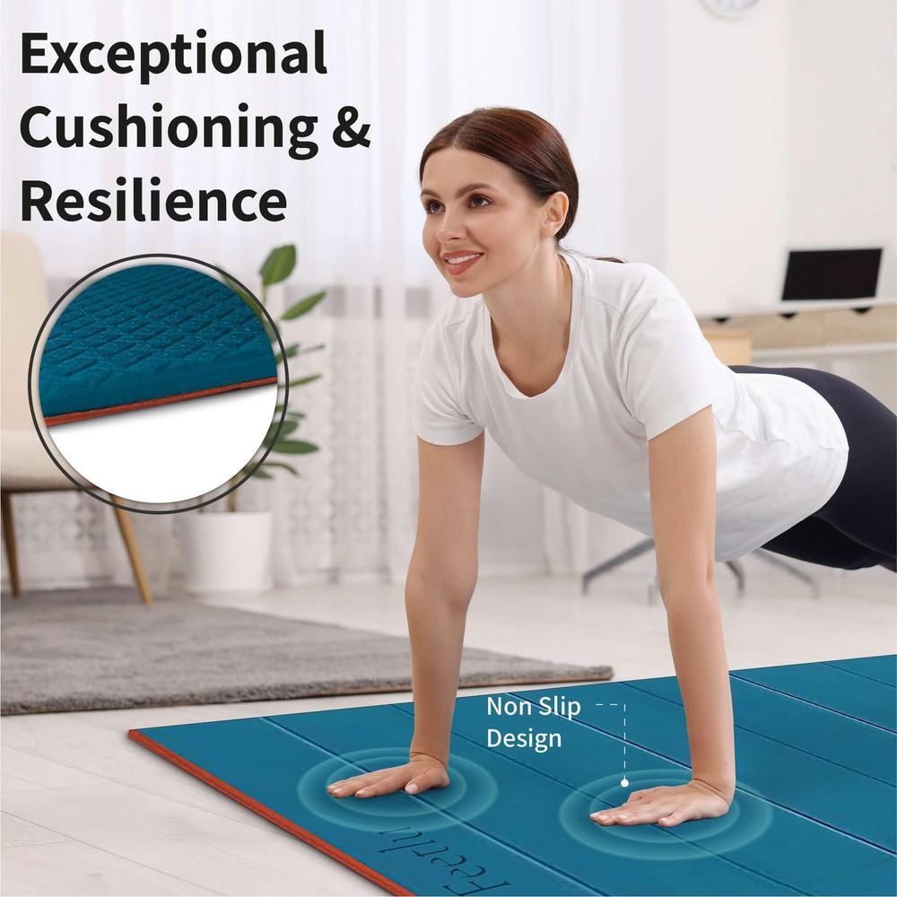 Folding Yoga mat is designed easy to carry and easy to storage for multi-purpose Yoga Pilates, Exercise Workout. Most notably, the gripping property of the mat allows its surface to be non-slip throughout all practices. The Incomparable comfort elevate cushioning and protection for your joints and knees to the next level from minor to major floor exercise fitness sessions and is higher recommended by yoga user. [Non-Toxic & ITS Certified] Certified by ITS and made with non-toxic POE, 's odorless yoga mat ensures a cleaner, safer workout at home or in the studio. [Large & Thick] 's spacious 72" x 24" mat with 1/3" cushioning offers joint protection and comfort, ideal for yoga poses, therapy sessions, HIIT training, and easy travel. [Easy to Fold & Store] 's foldable yoga mat features a smart accordion design that folds quickly, lays flat without curling, and holds firm without any need for a strap. [Non-Slip Surface & Multi-Purpose] A secure, anti-slip design with double texture provides traction during every move. Lightweight for easy transport to the gym, Pilates studio, or meditation class. [100% Customer Satisfaction] Designed with a high-quality, non-absorbent surface that resists sweat and wipes clean easily, our yoga mats offer a worry-free experience. Reach out anytime for a quick solution.